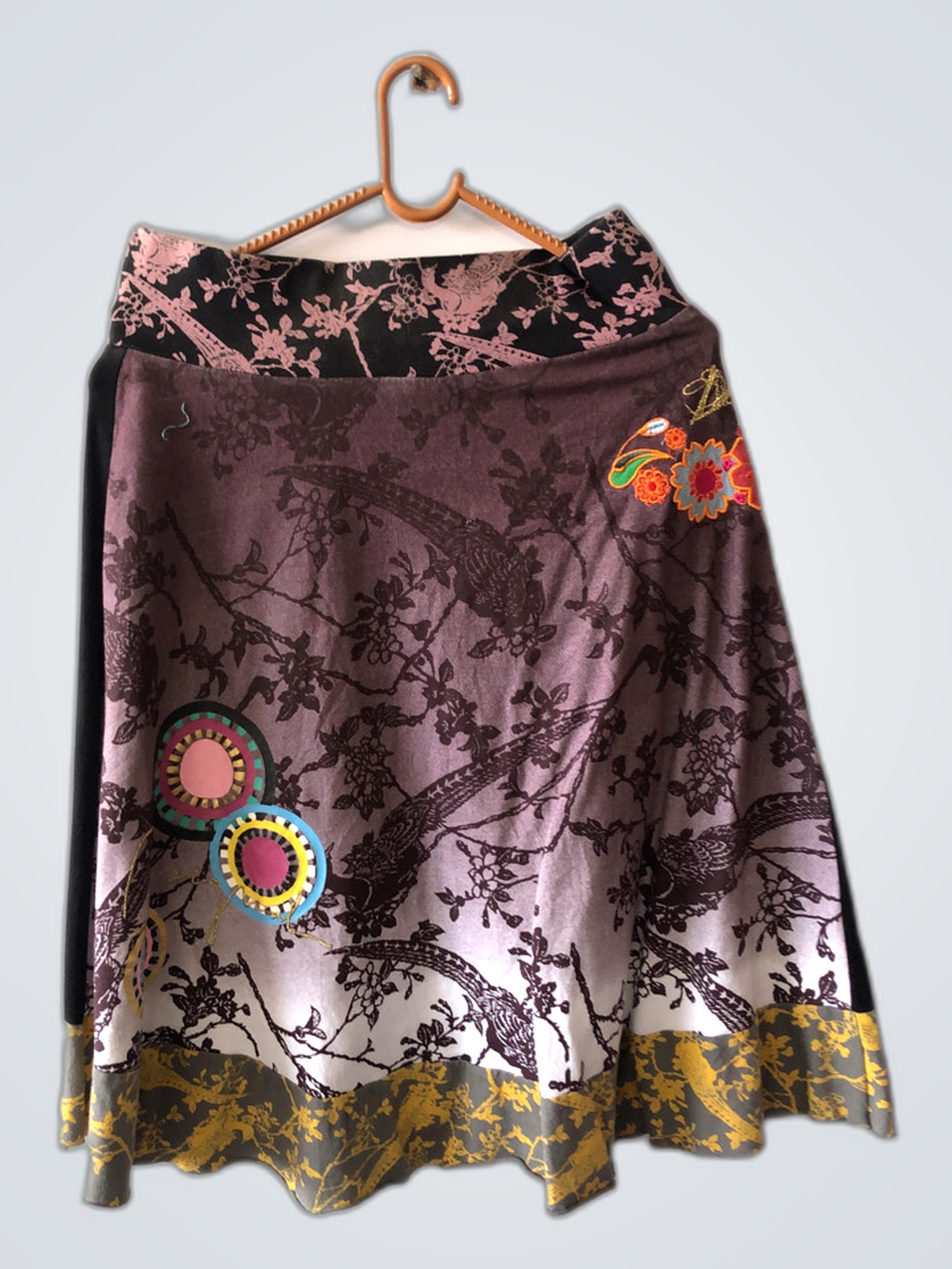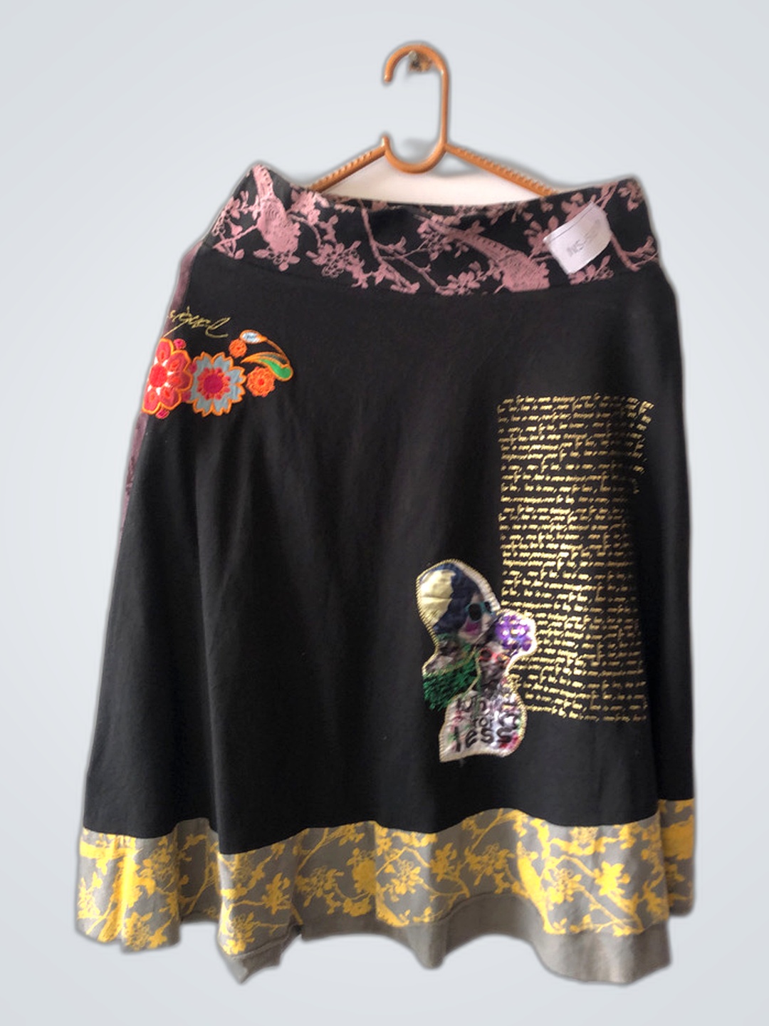 Black Floral Skirt with Gold Accents
