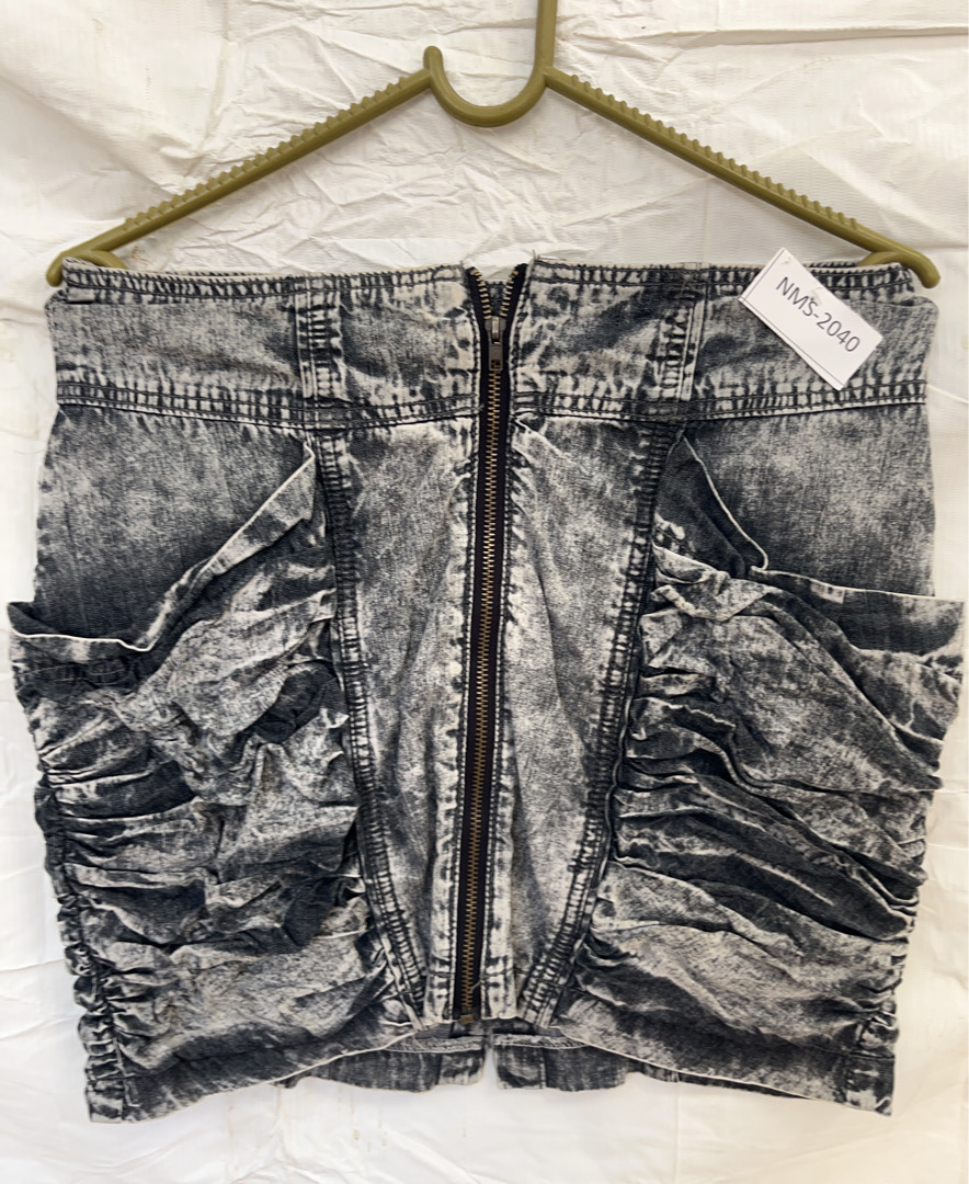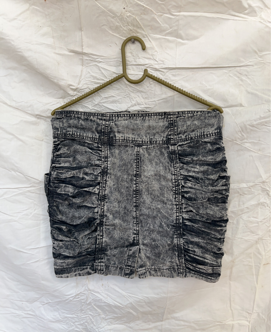 Black Gray Ruched Mini Skirt