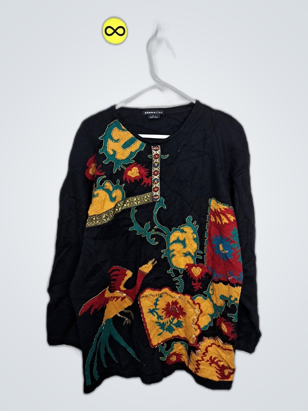 Black Knit Sweater with Parrot Design