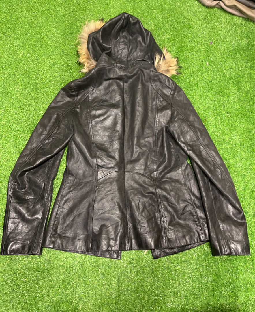 Black Leather Jacket with Fur Hood