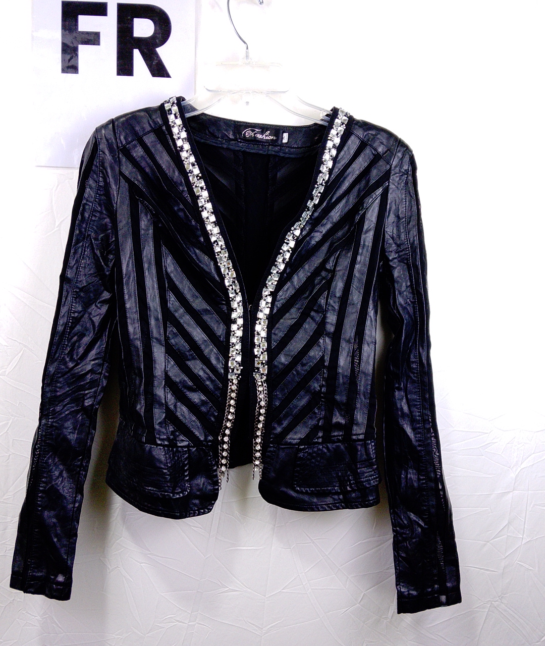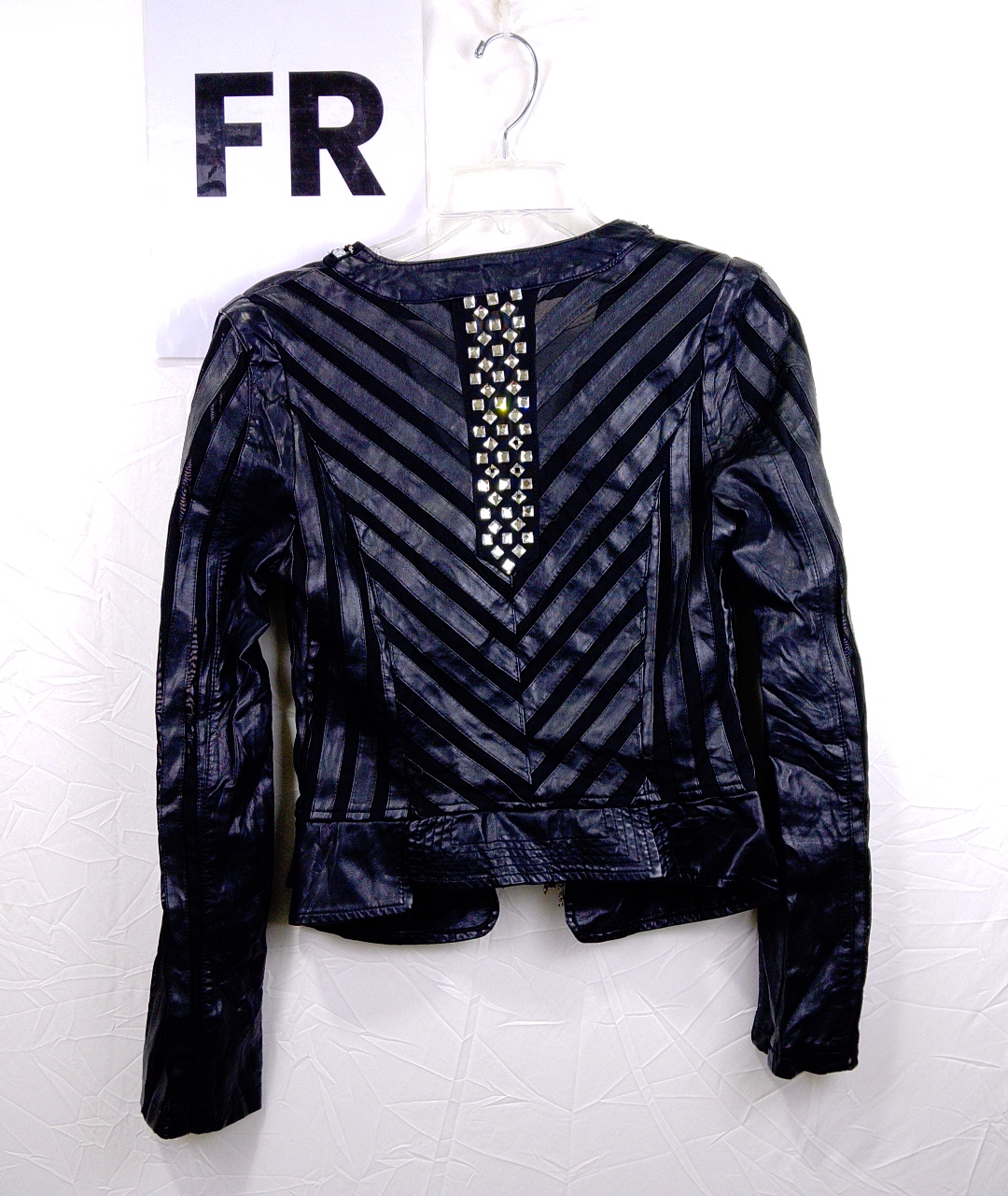 Black Leather Jacket with Rhinestone Trim