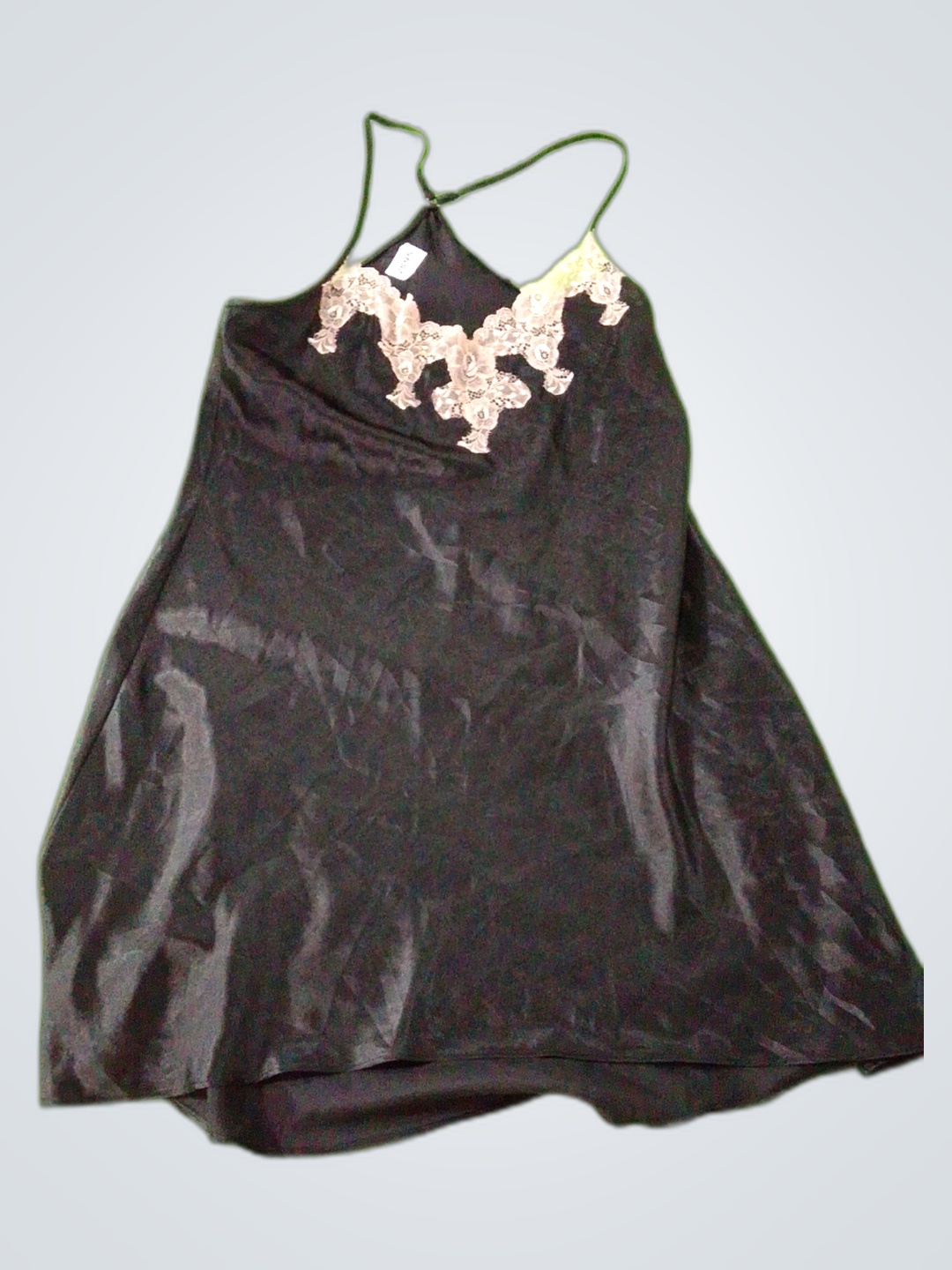 Black Satin Cami with Lace Detail