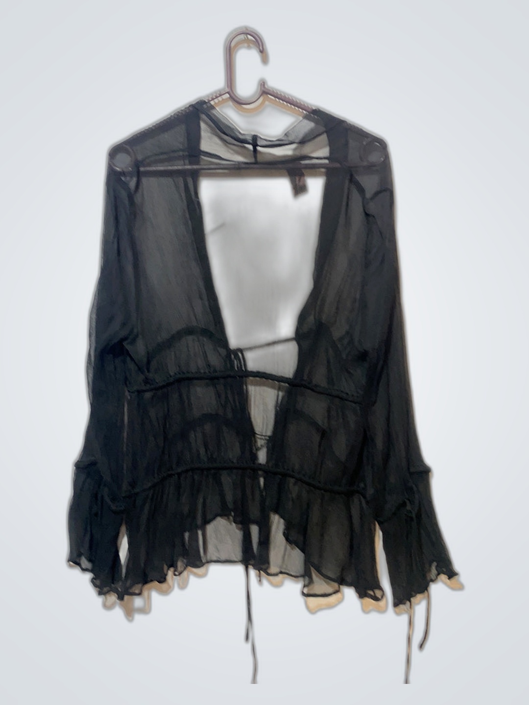 Black Sheer Ruffled Top