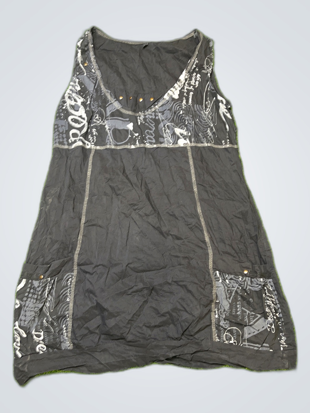 Black Sleeveless Dress with White Graphics
