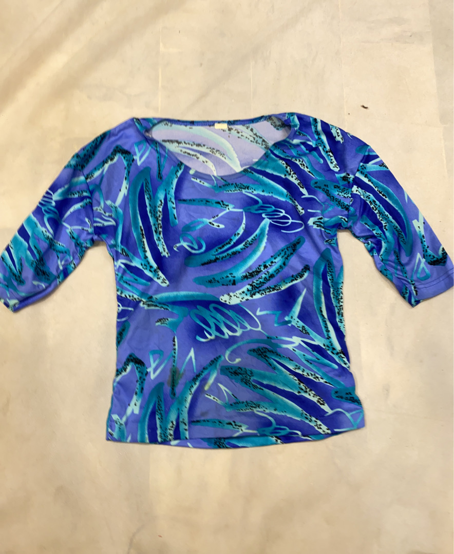 Blouse with Blue and Purple Pattern