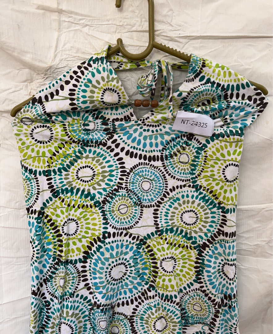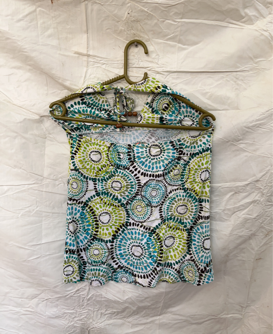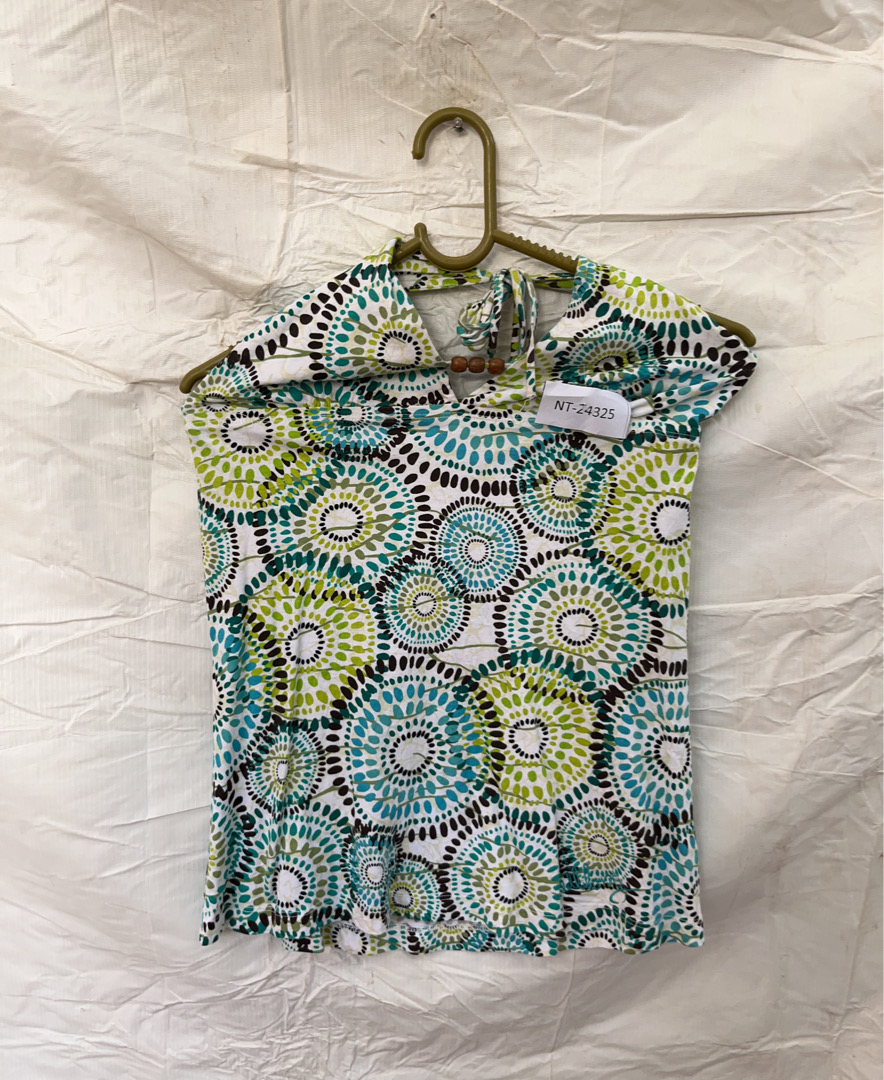 Blouse with Green, Blue, and Black Circular Pattern