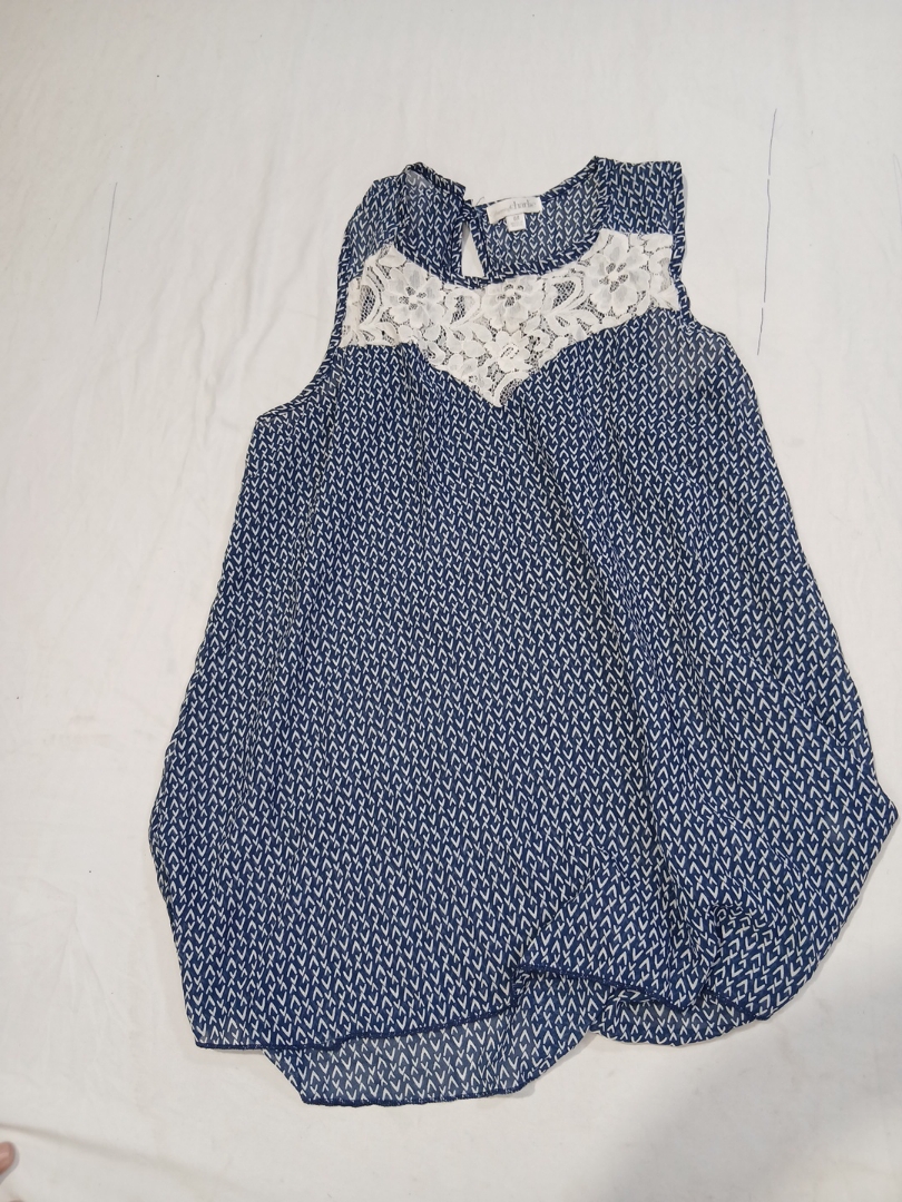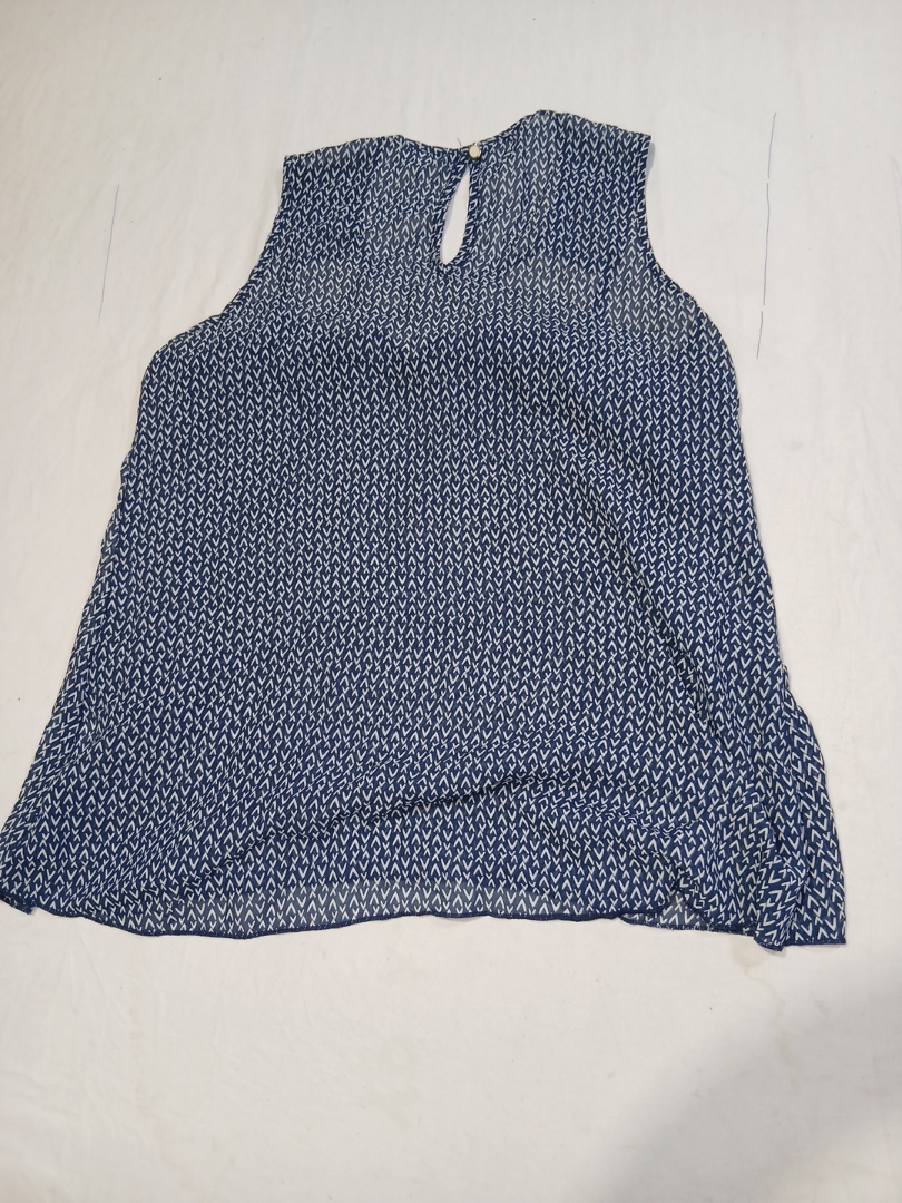 Blue and White Patterned Blouse