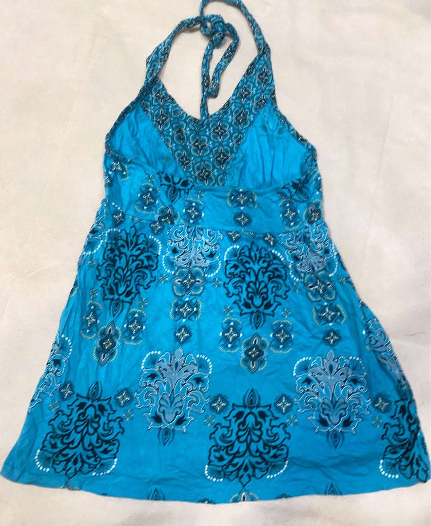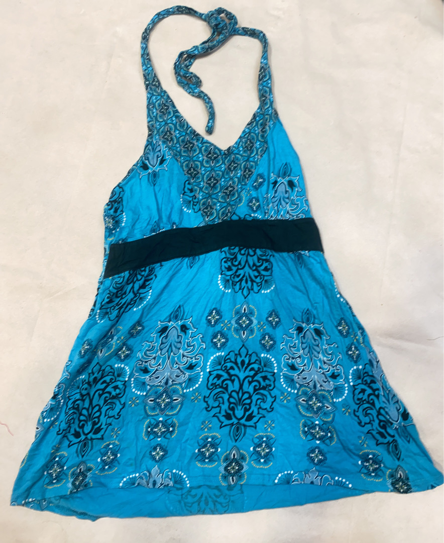 Blue Floral Halter Neck Dress