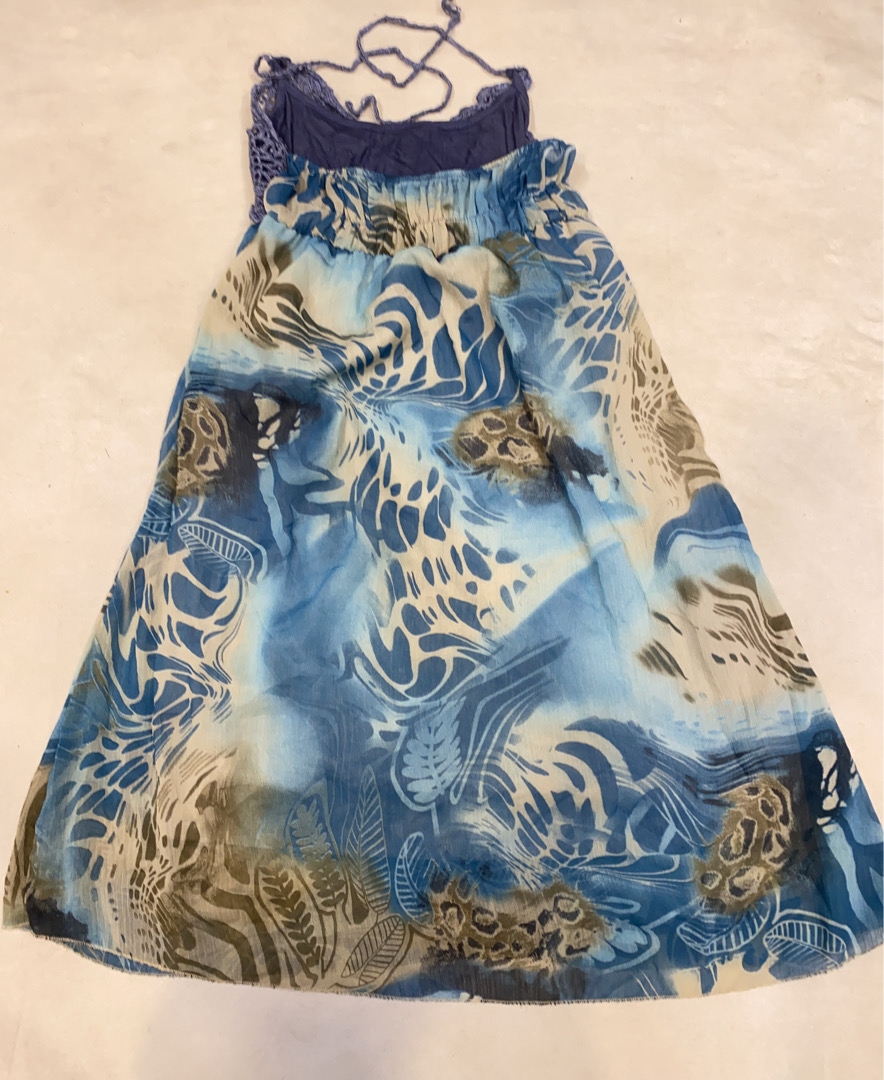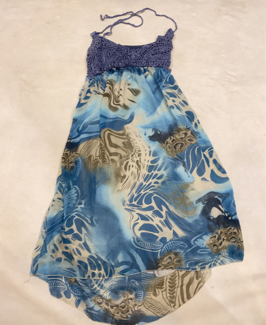 Blue Floral Halter Neck Dress