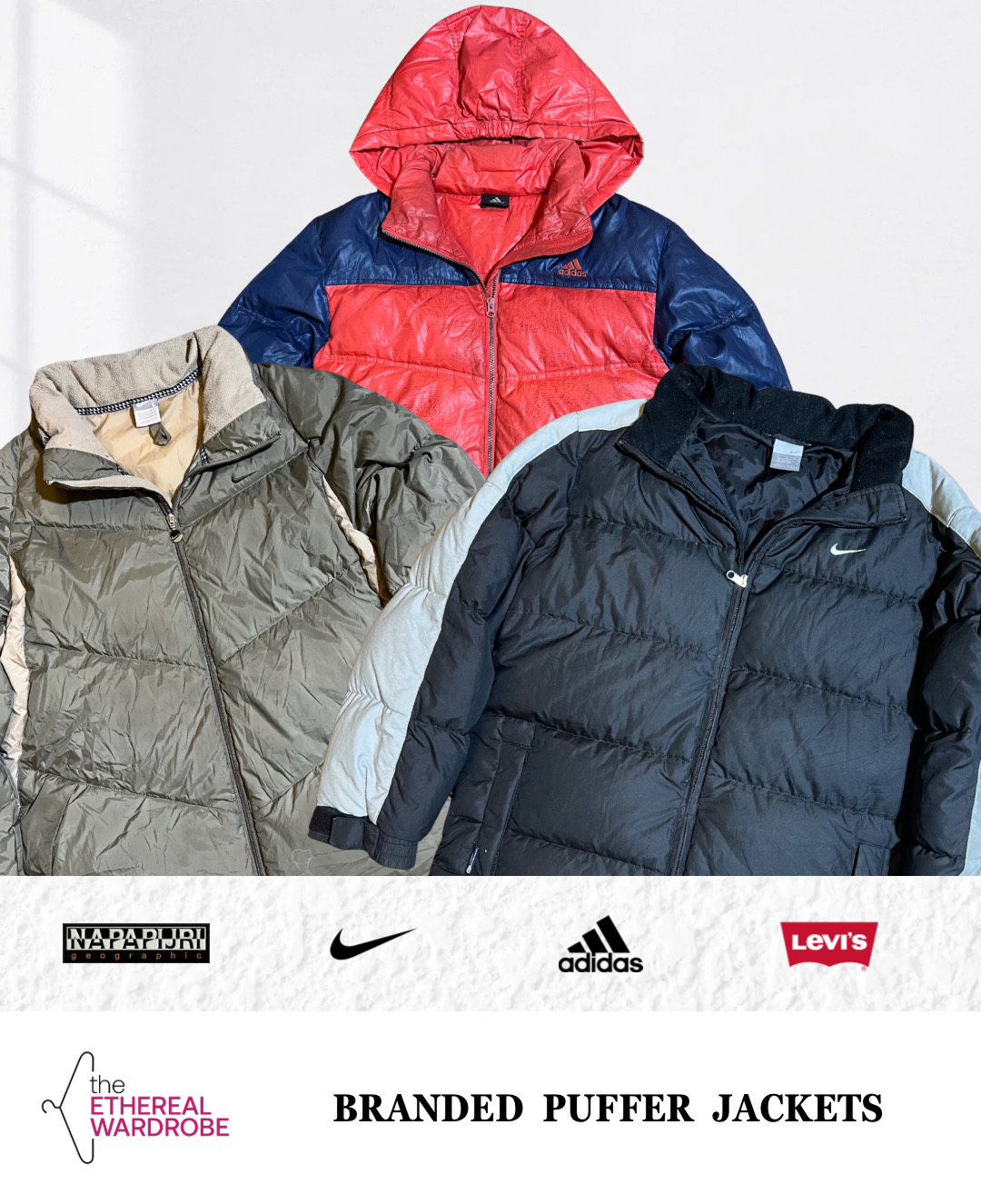 Branded down / puffer Jackets Vintage Nike, Adidas, Napapijri & Levi's