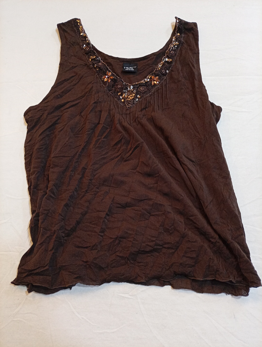 Brown Embellished Tank Top