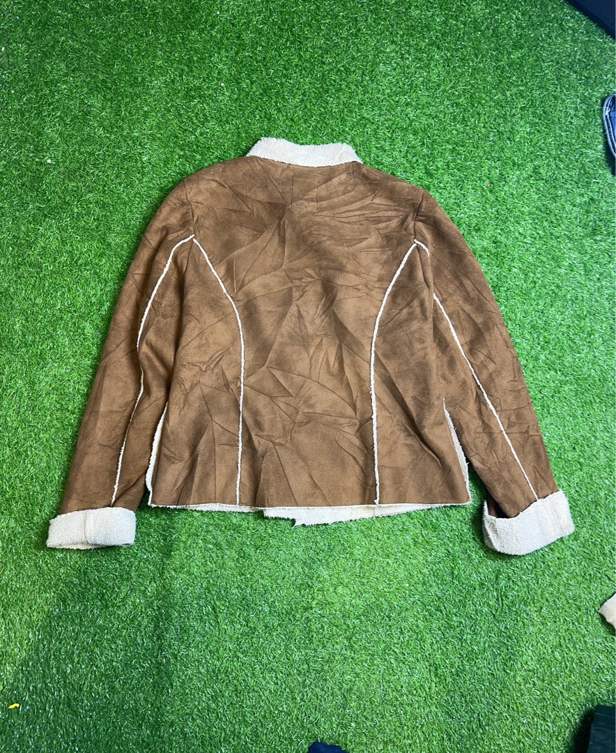 Brown Faux Leather Jacket with Sherpa Collar and Cuffs