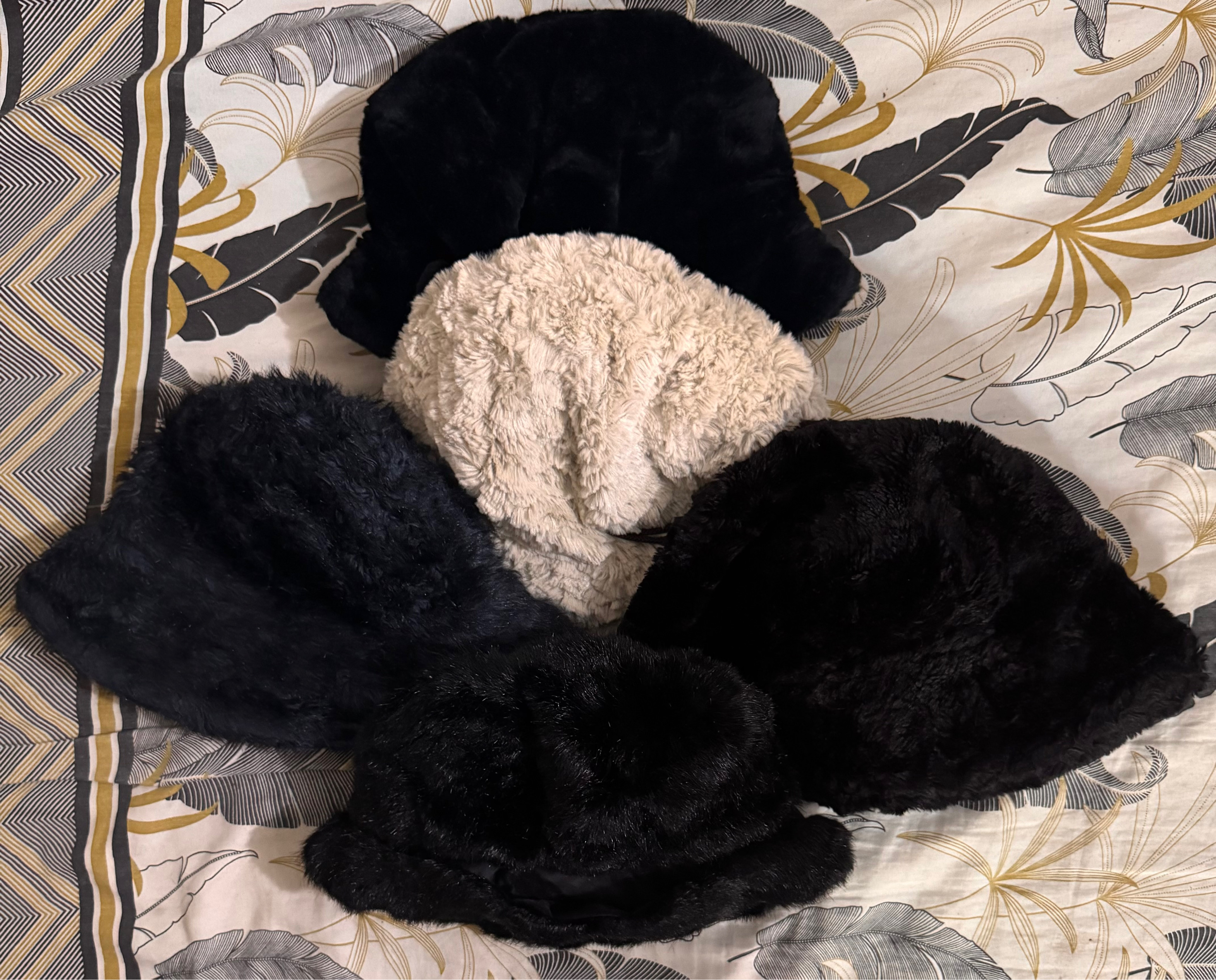 Cozy Faux Fur Winter Hat Bundle – Black & Cream Collection