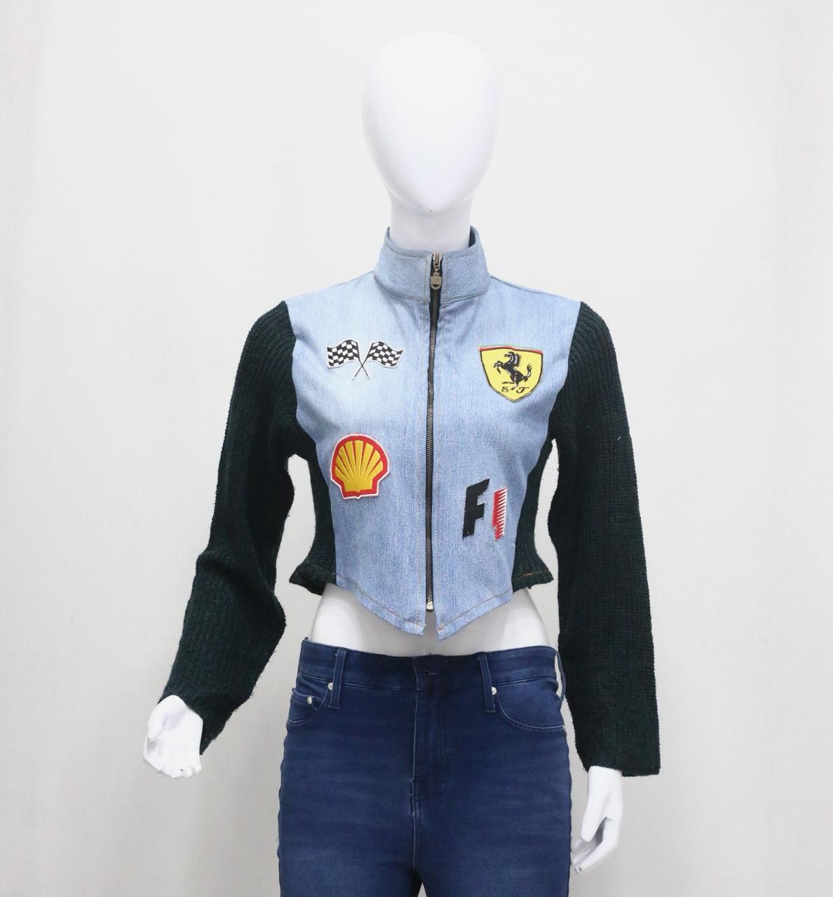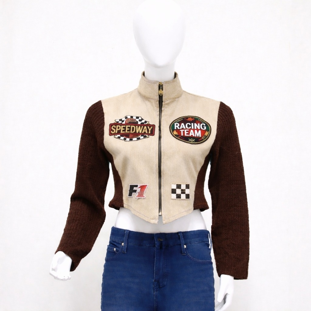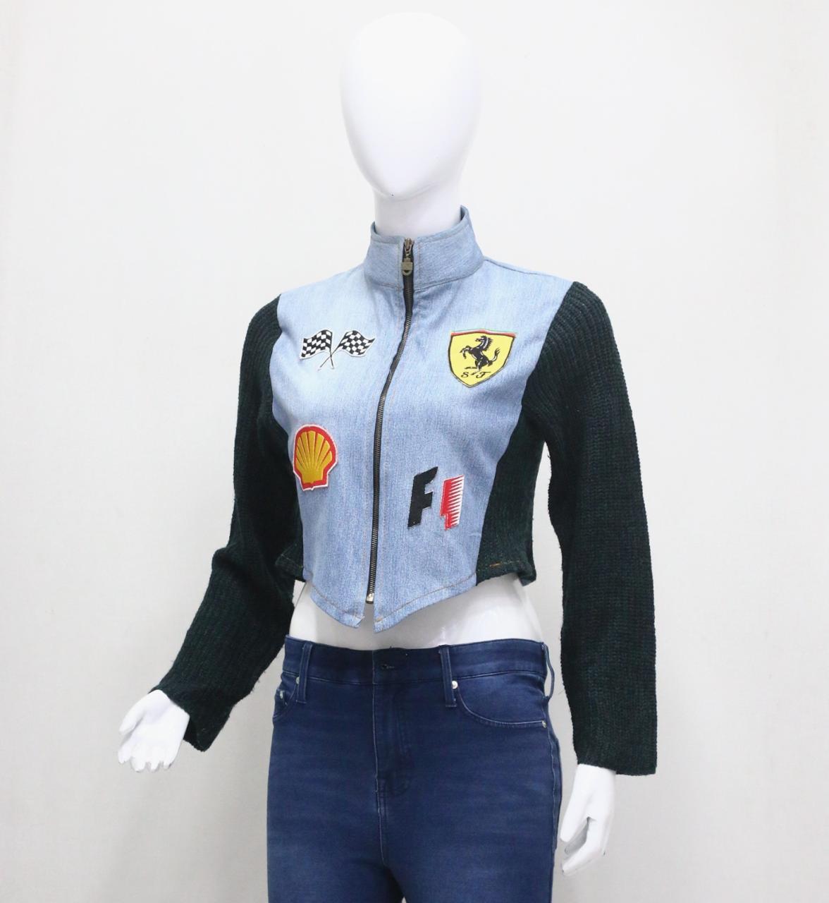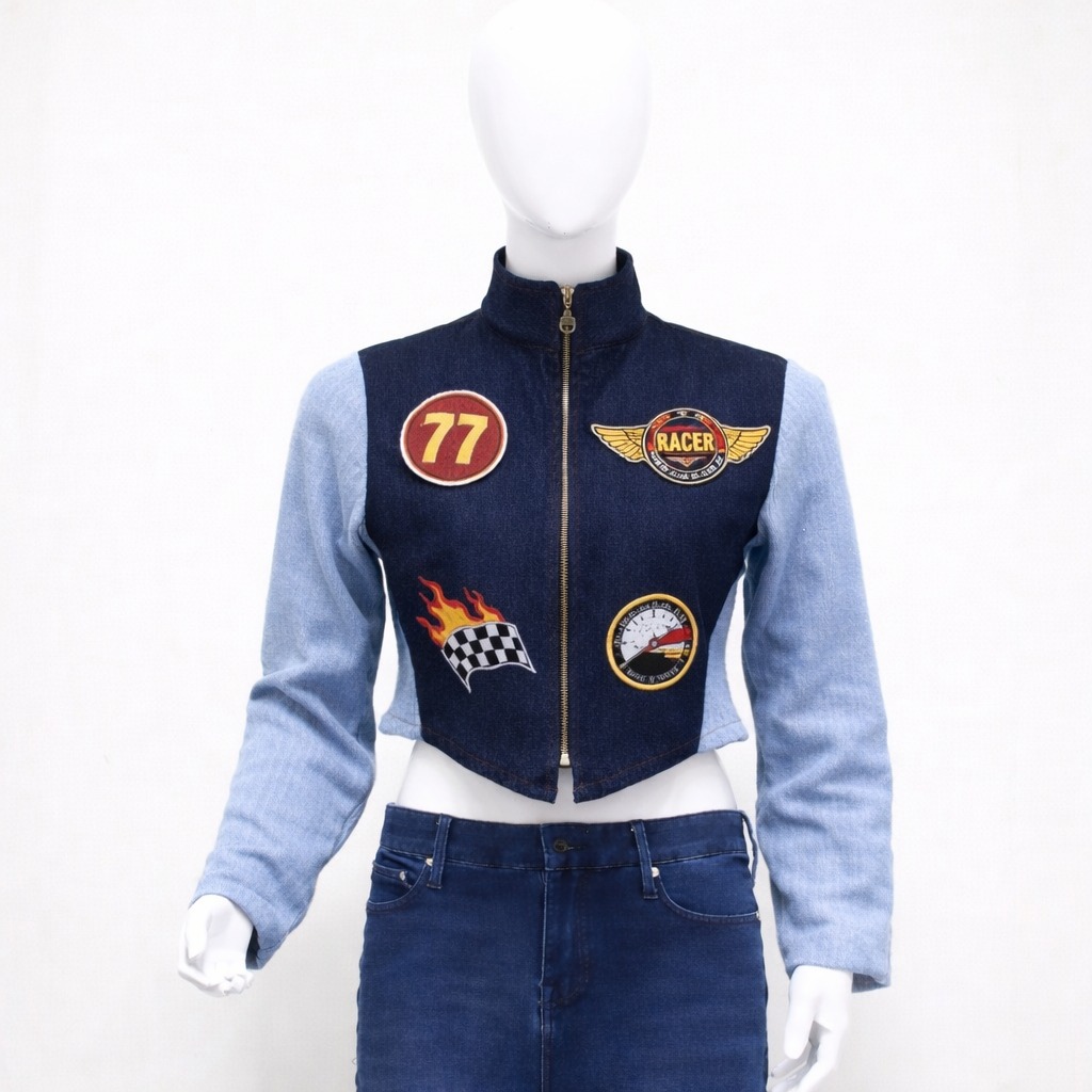 CR1143 Upcycled Racing Patch Crop Jacket