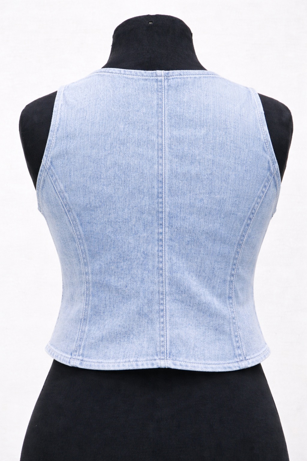 Each vest is individually made from reclaimed denim. Wash shades and stitching details may vary.