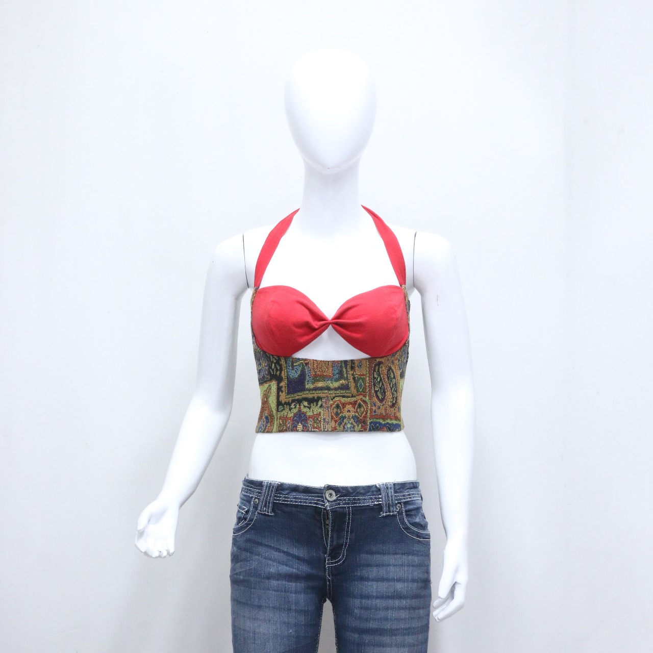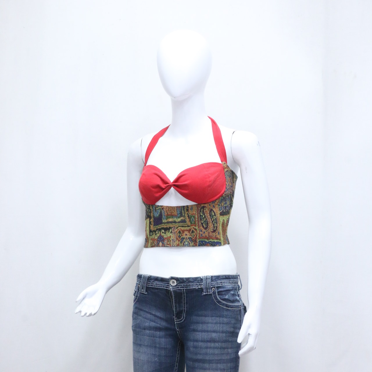 CR707 Upcycled Paisley Passion Halter Crop Top