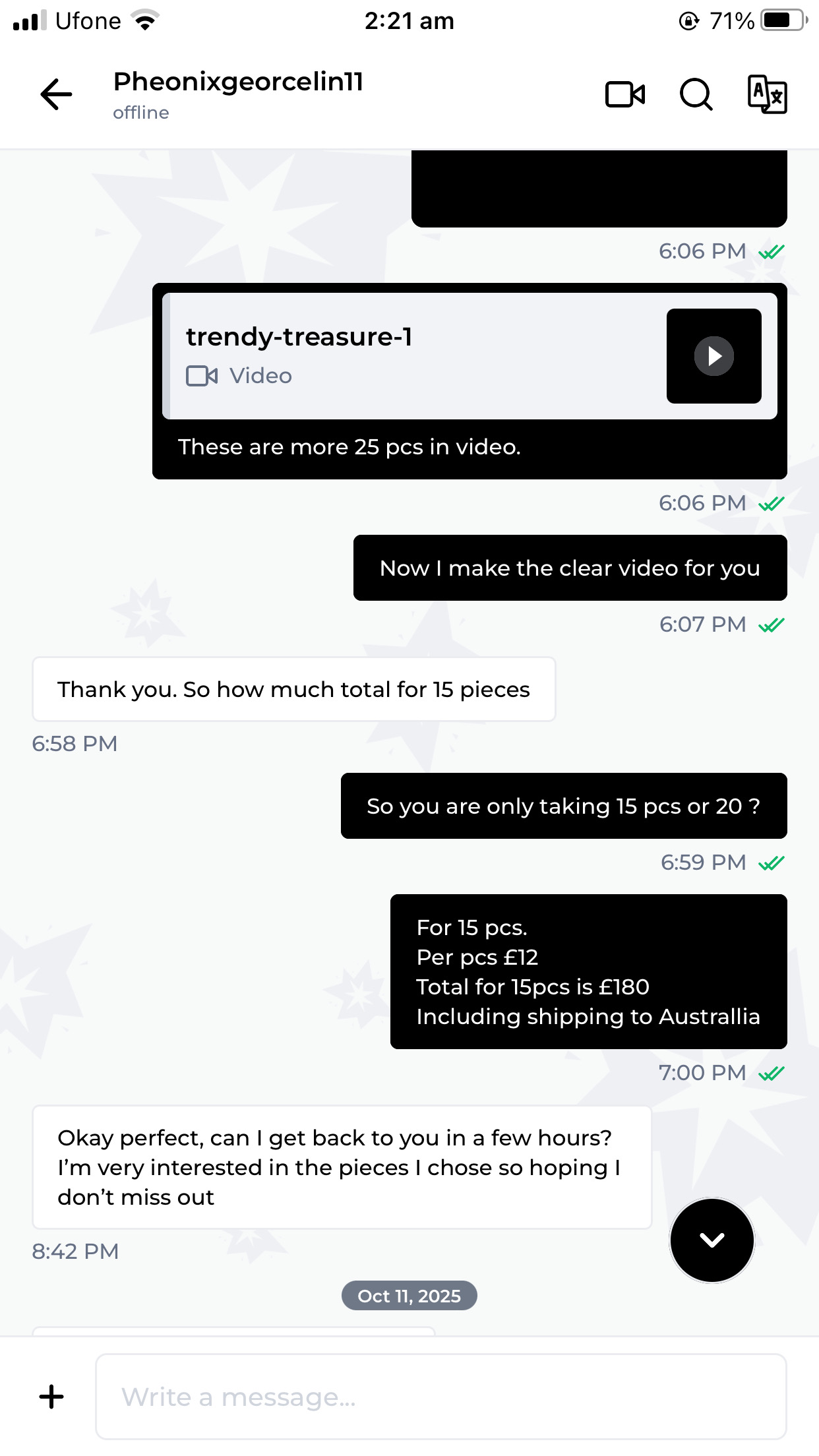£12/pc (£181)