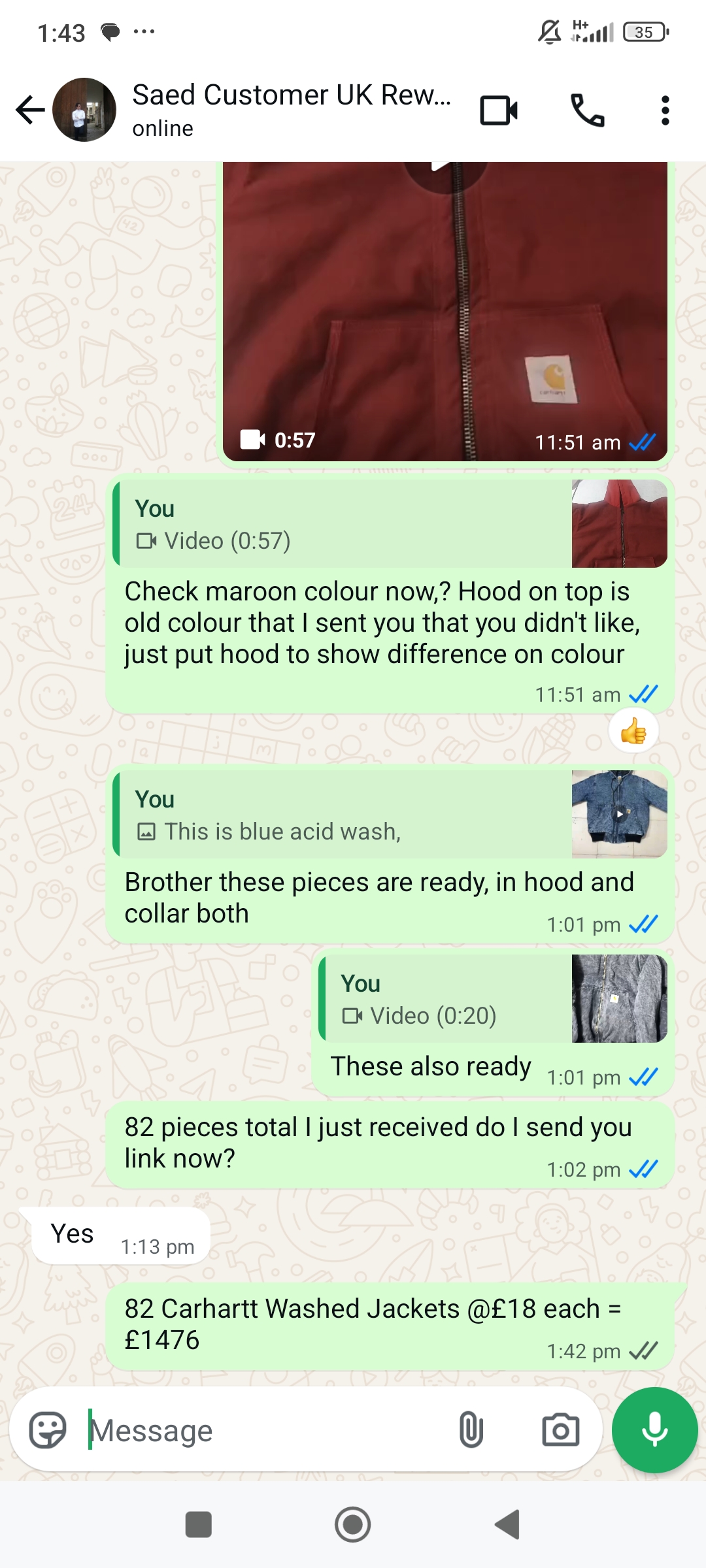 Custom handpick Saed order 82 Carhartt Jackets Denim and Black different wash