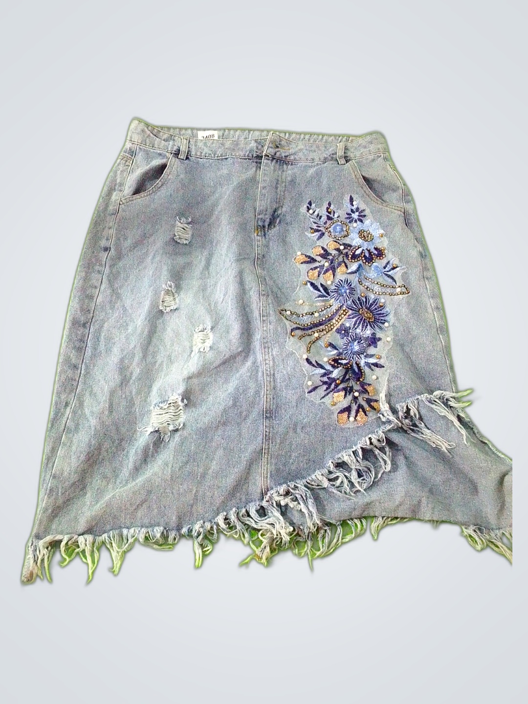 Distressed Denim Skirt