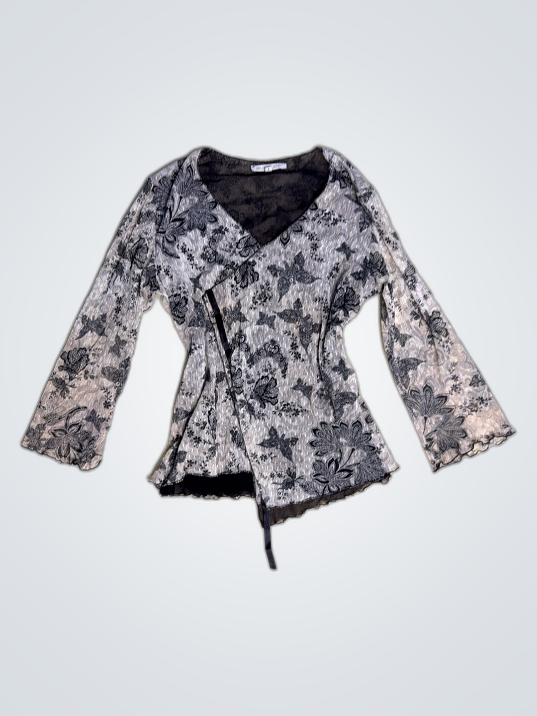 Gray Floral Lace Top