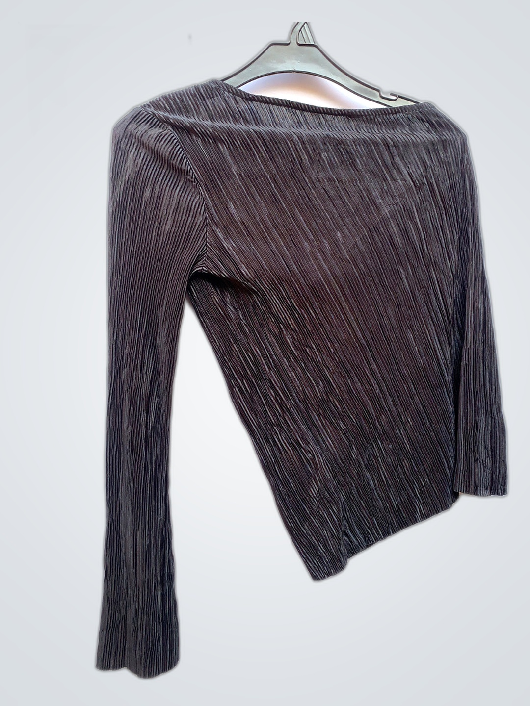 Gray Ribbed Long-Sleeve Top