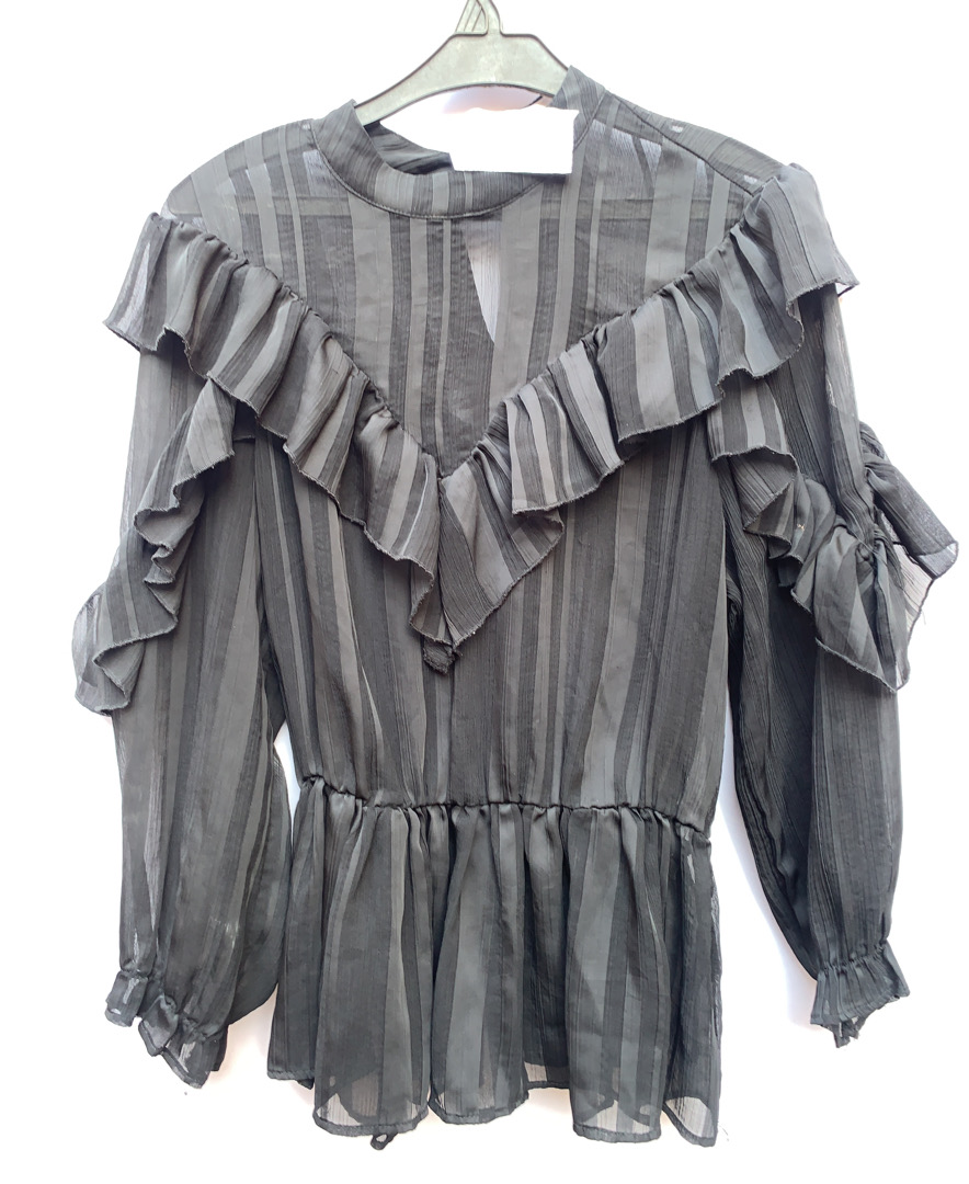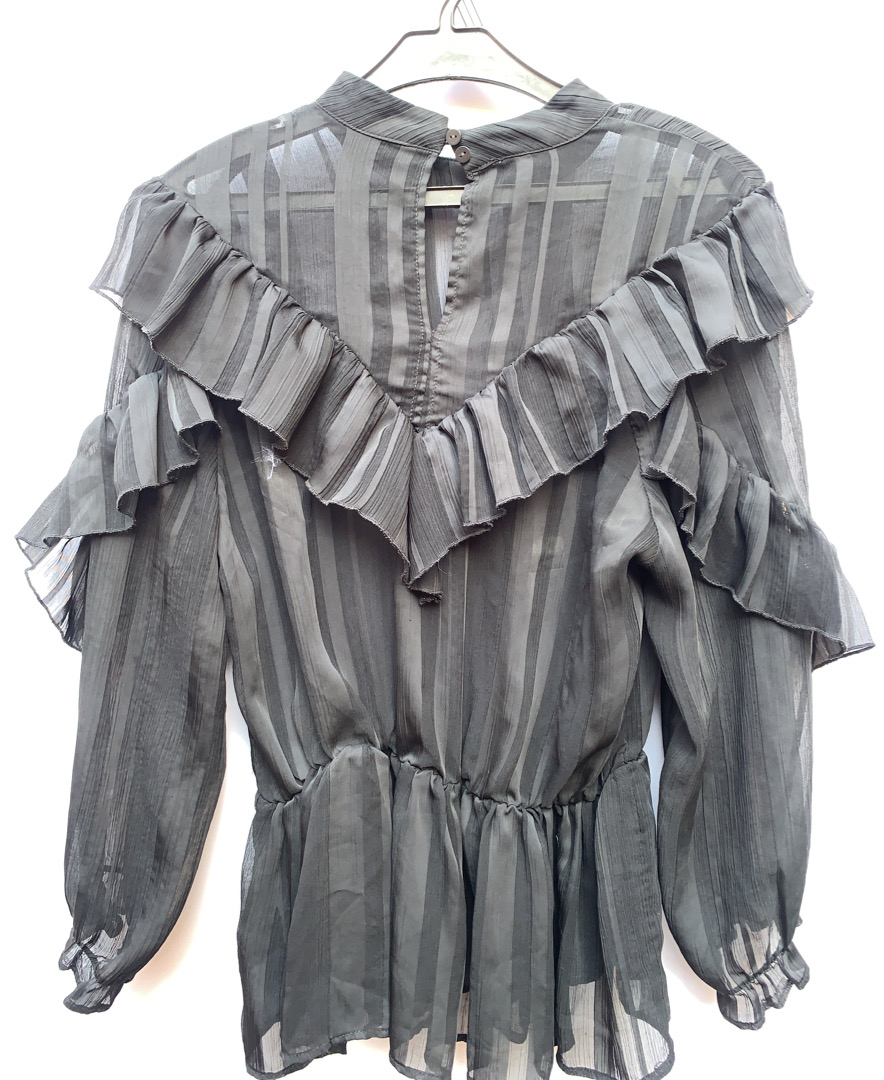 Gray Striped Ruffled Top