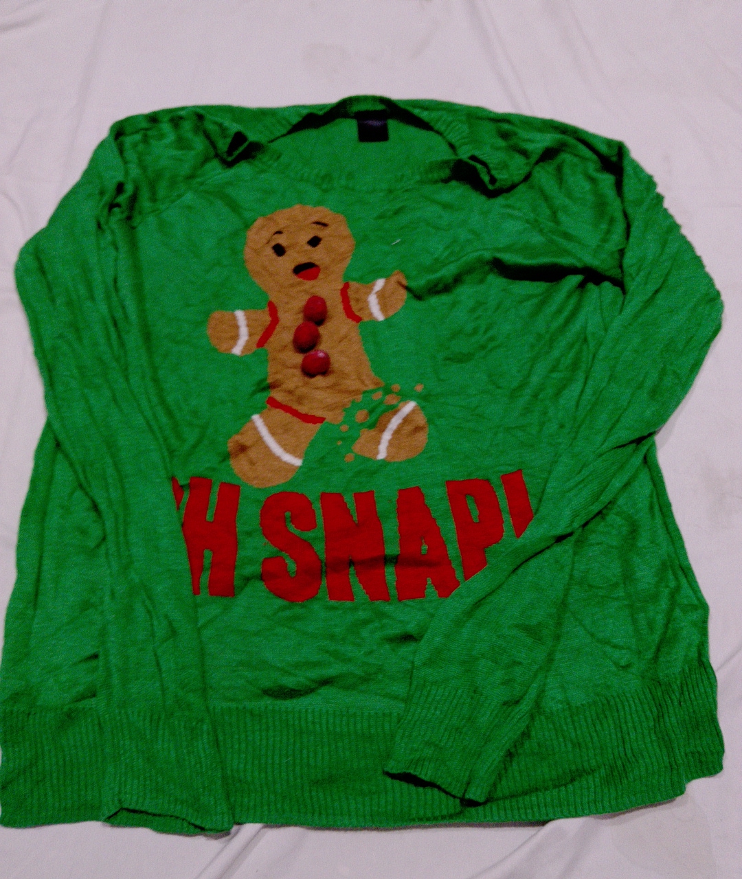Green Sweater with Gingerbread Man Design