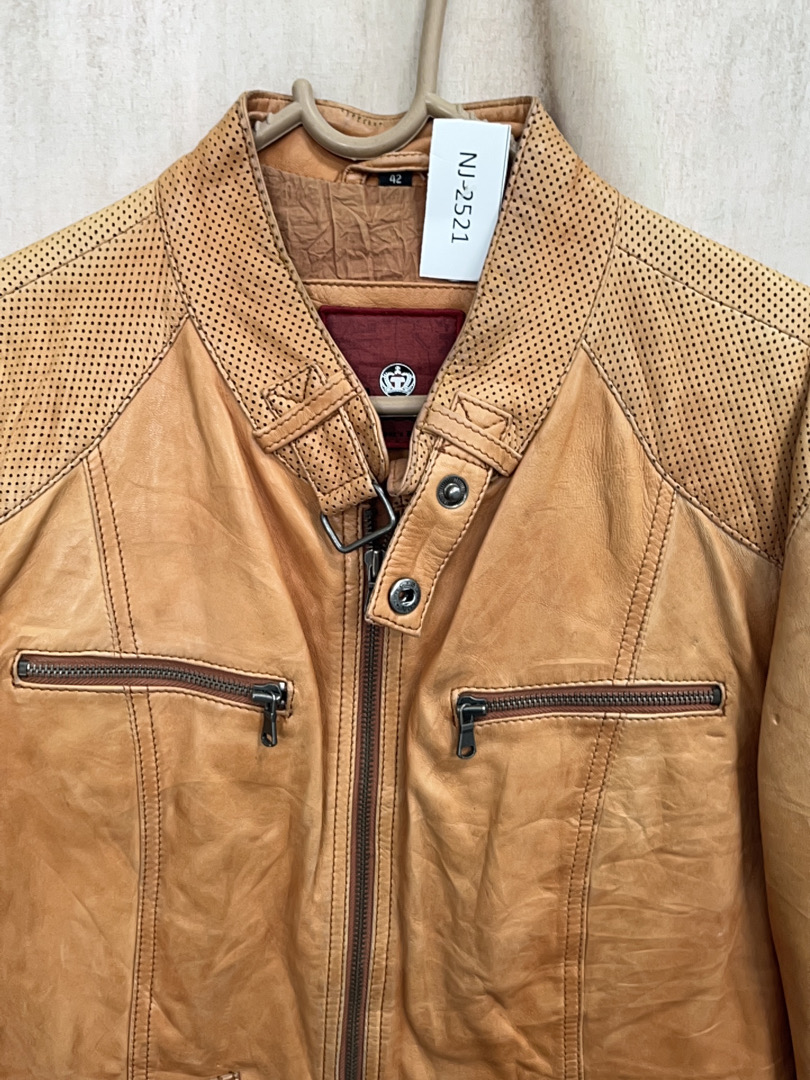 Jack & Jones Tan Leather Biker Jacket
