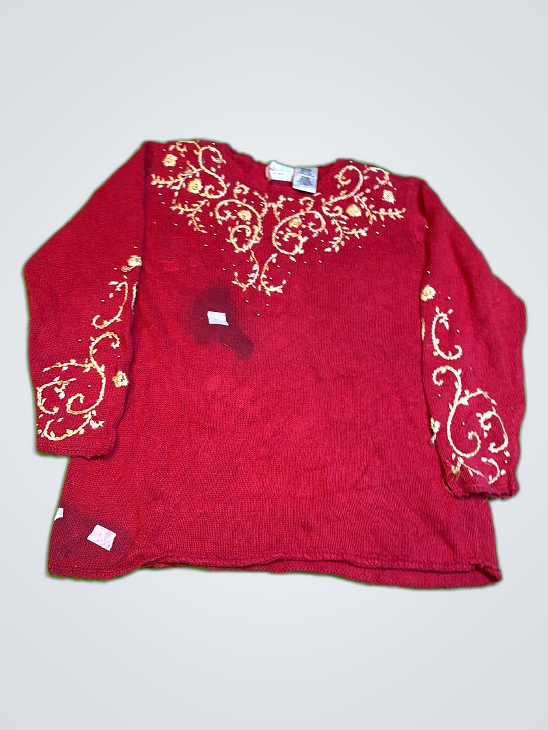 Kathie Lee Woman Red Embroidered Sweater