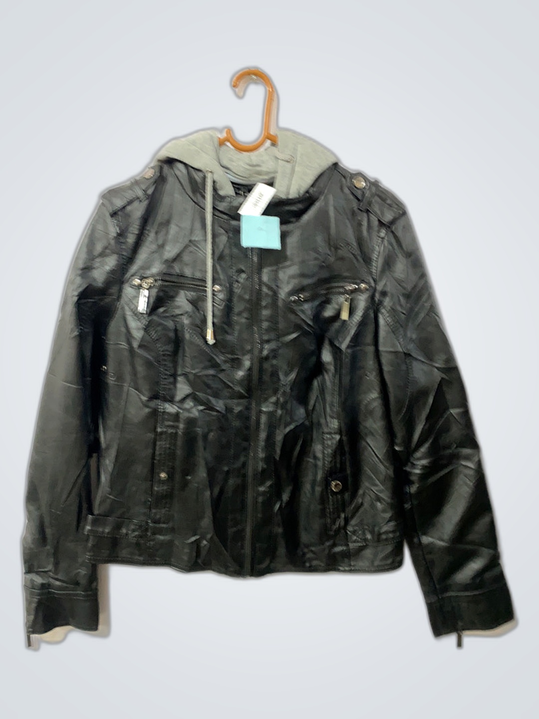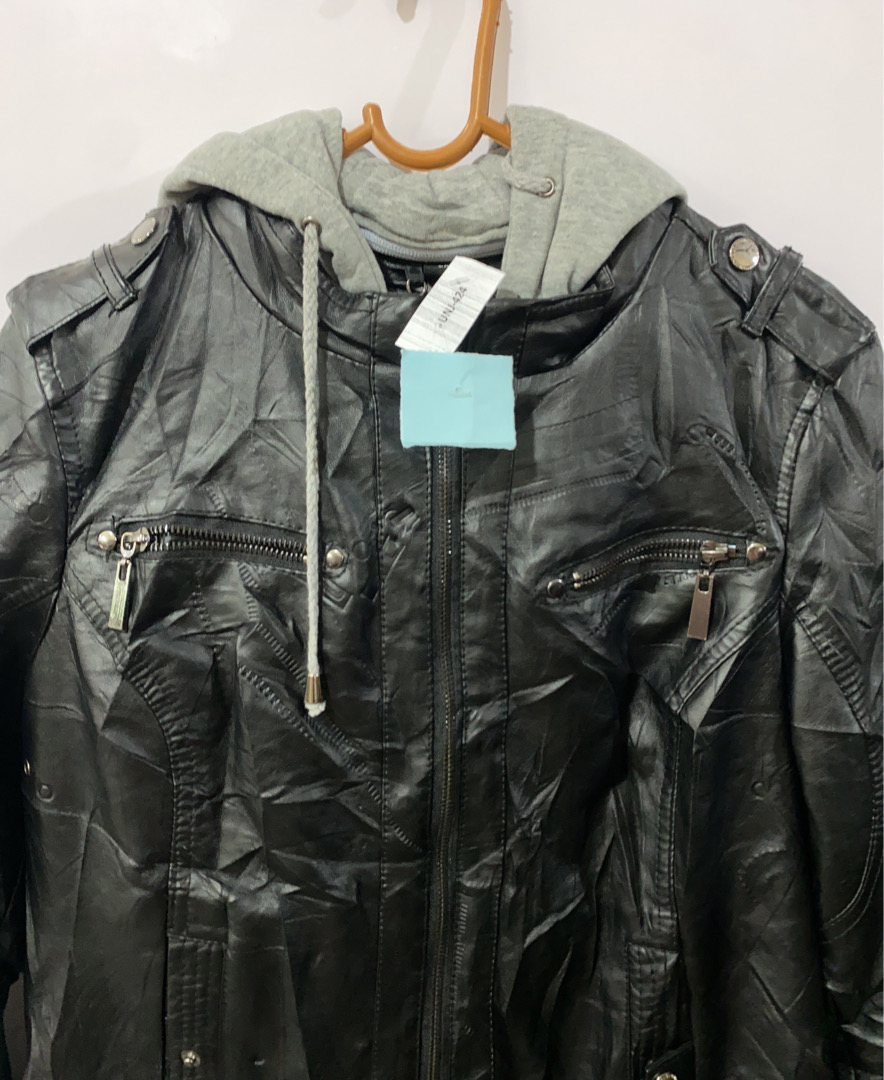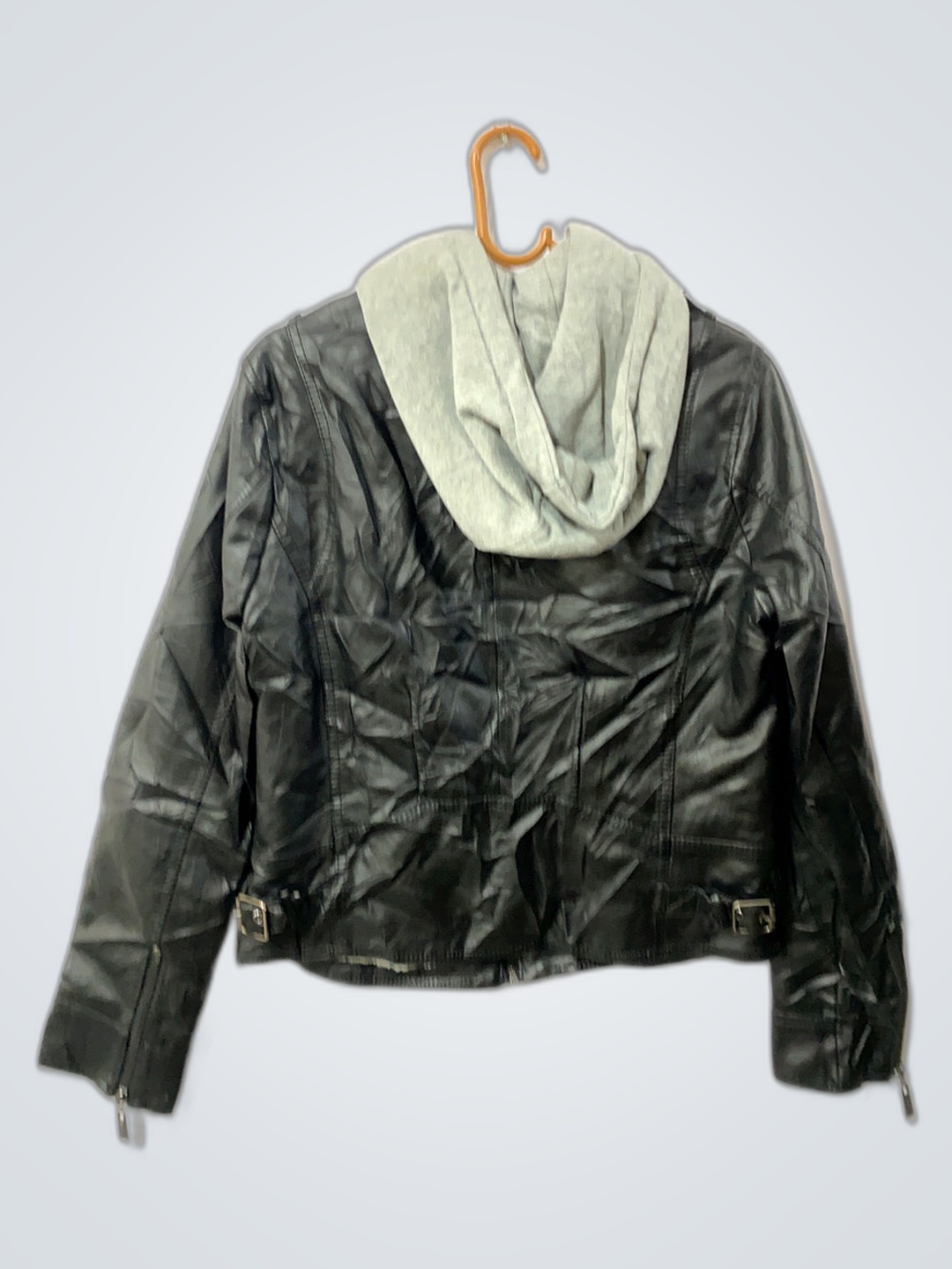 Leather Jacket with Gray Hood