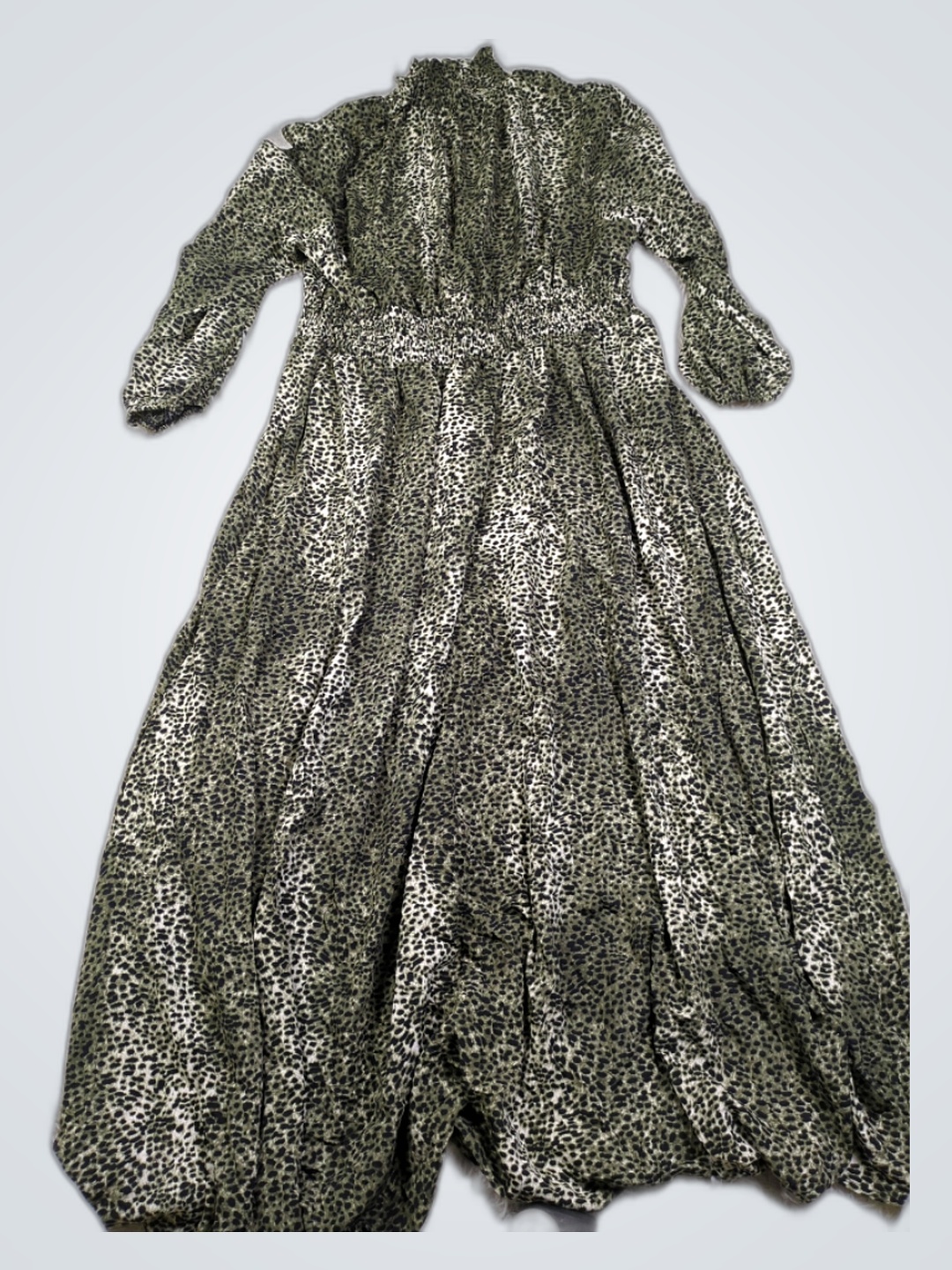 Long Green Dress with Animal Print