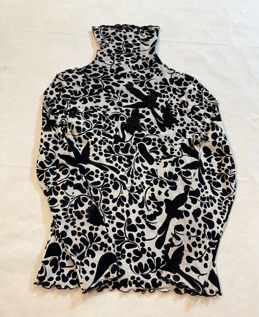 Long Sleeve Mock Neck Top with Floral Pattern