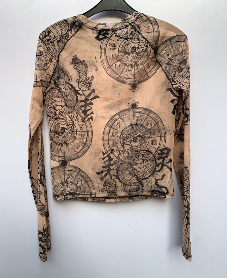 Long-sleeved top with dragon print
