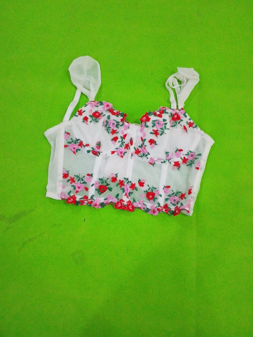 Mesh Bra with Floral Pattern