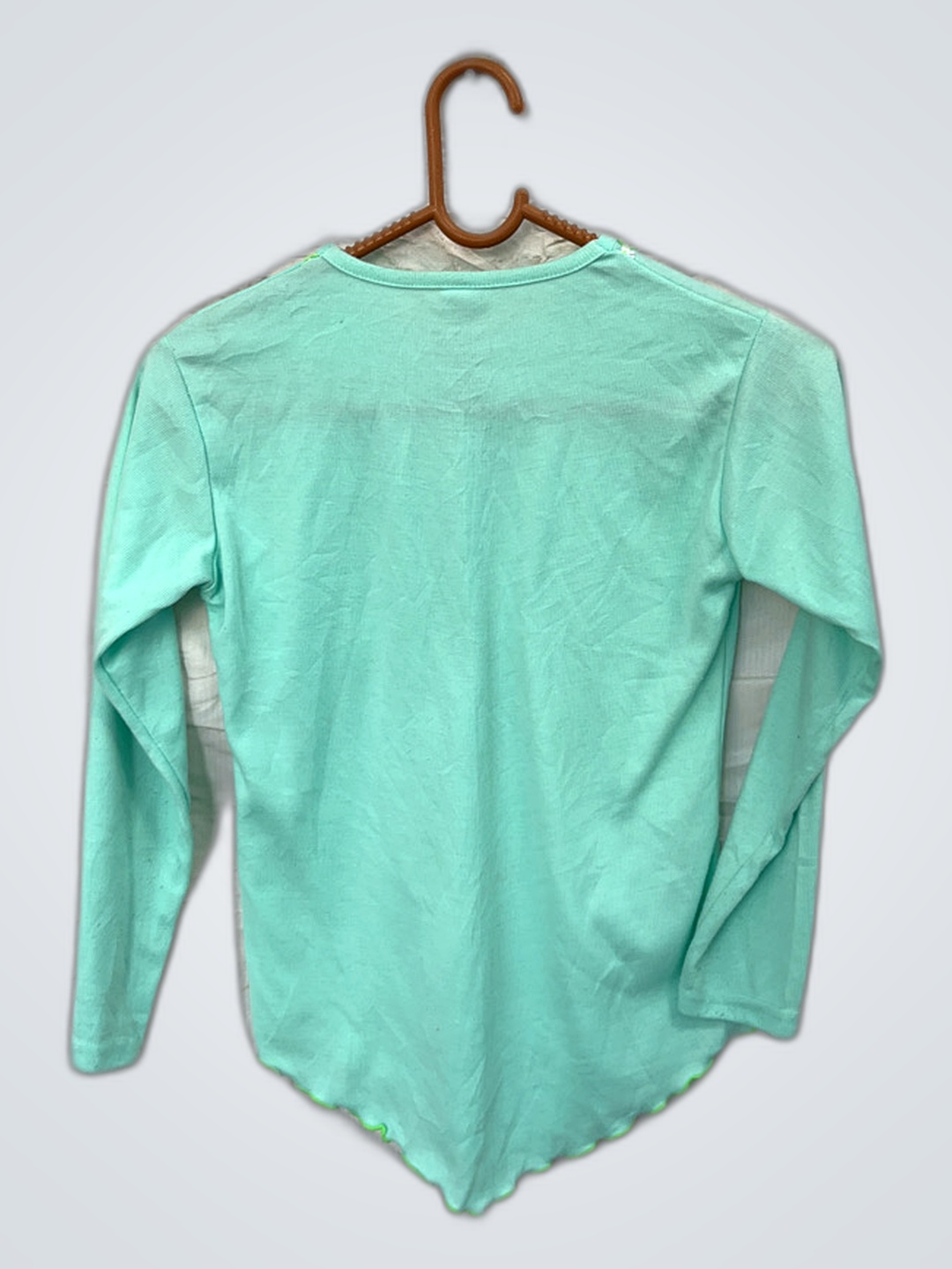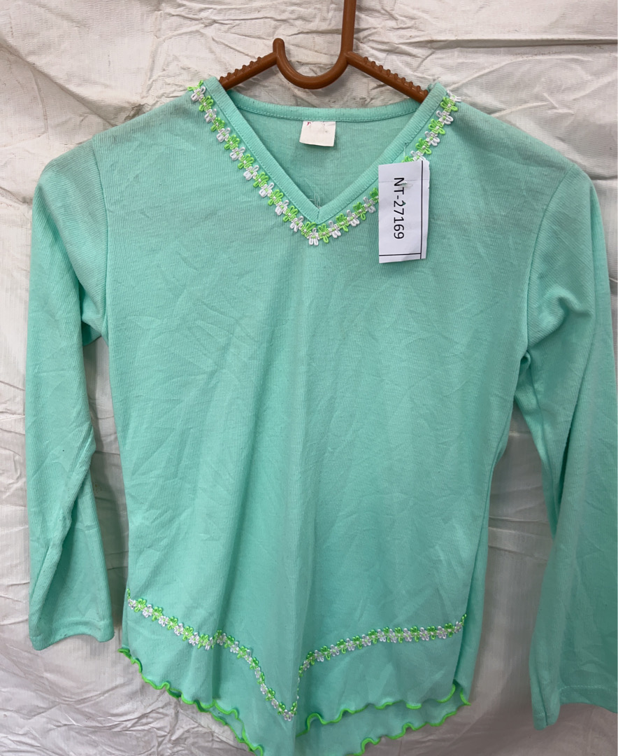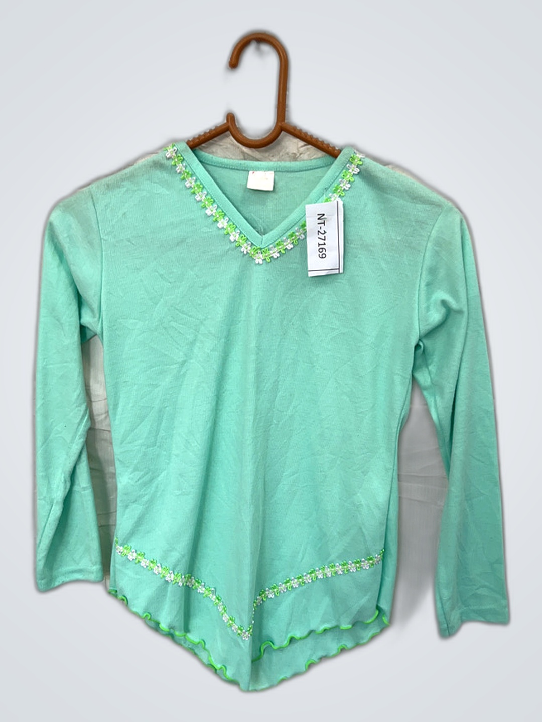 Mint Green Long-Sleeve Top with Floral Embroidery