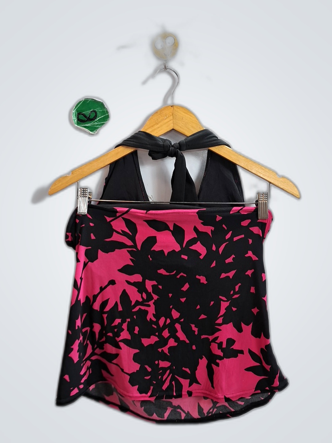 Pink and Black Floral Halter Top