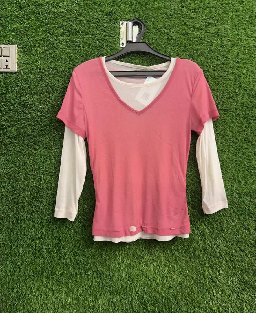 Pink and White Layered Top