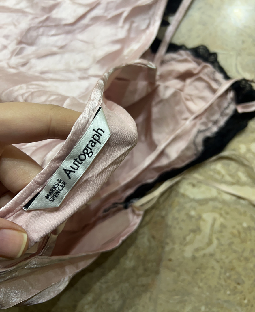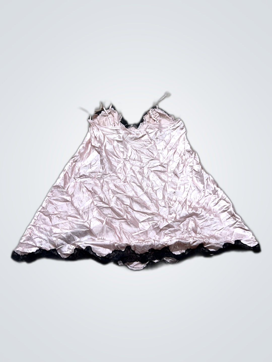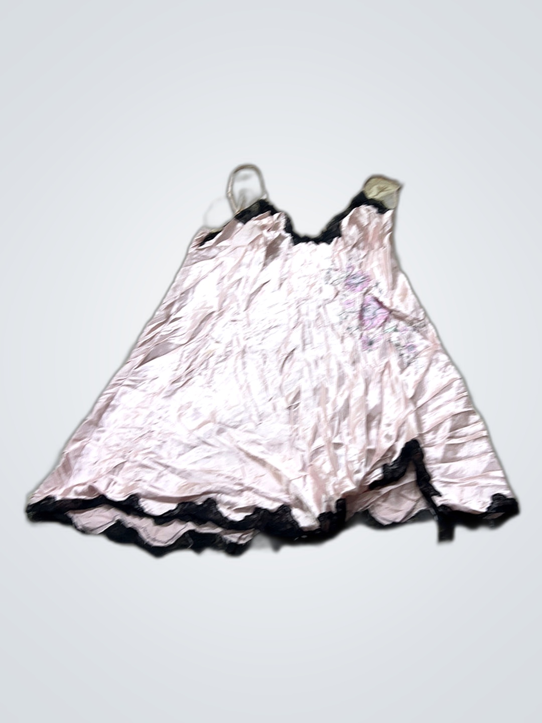 Pink Satin Chemise with Black Lace Trim