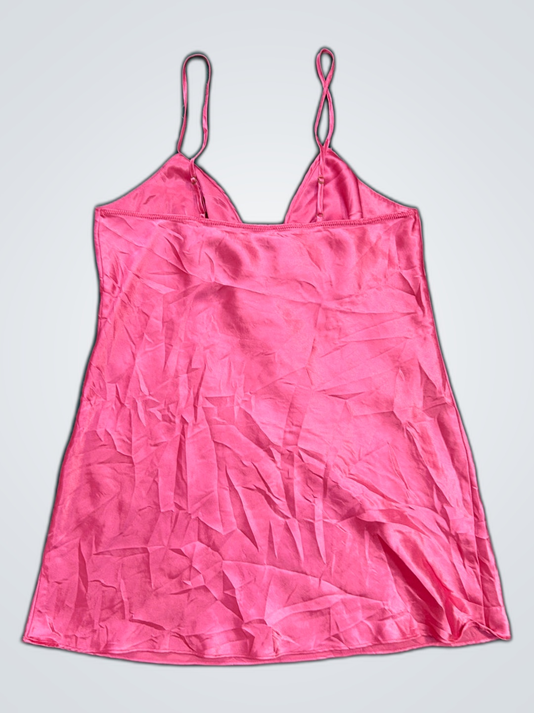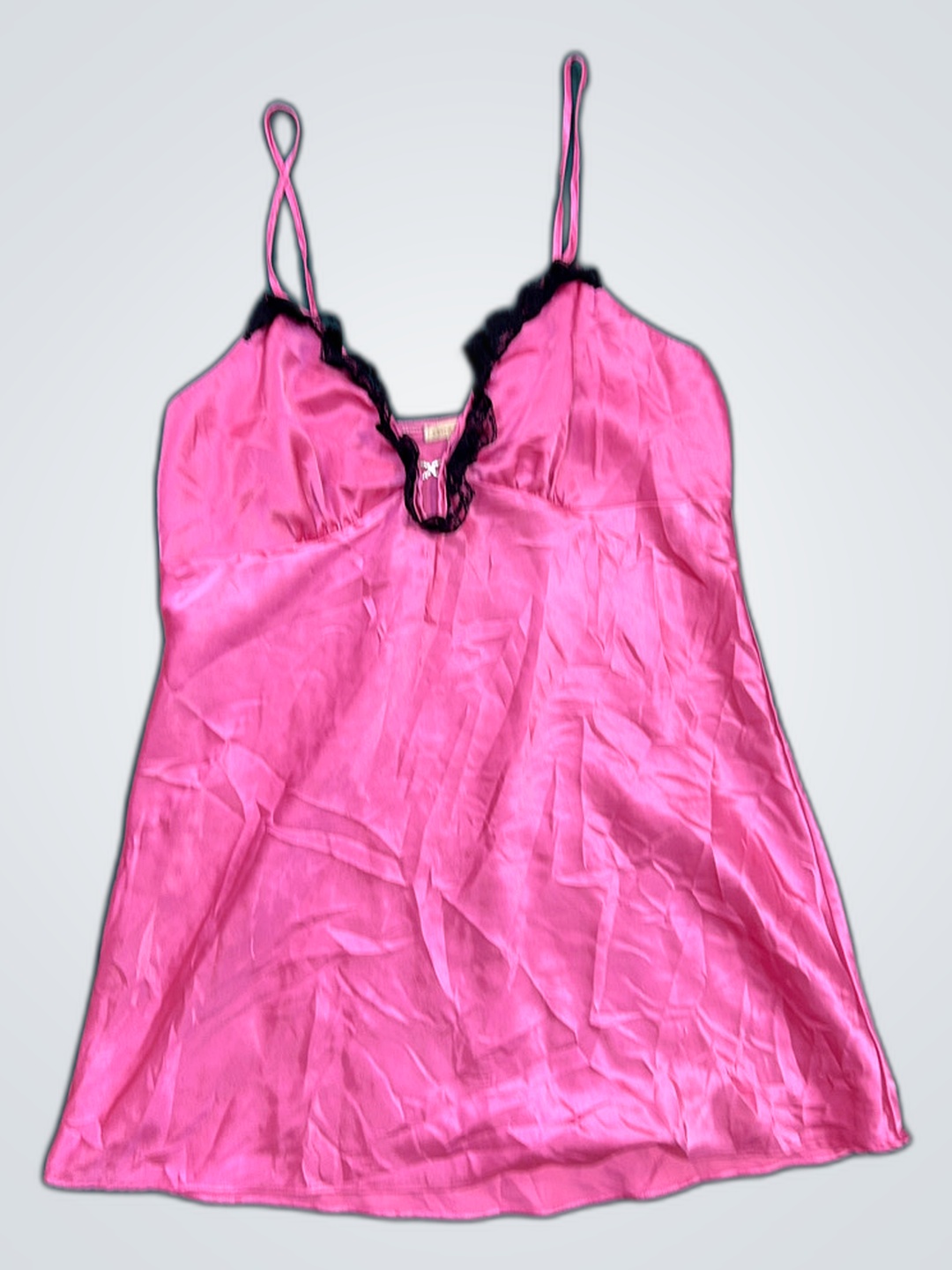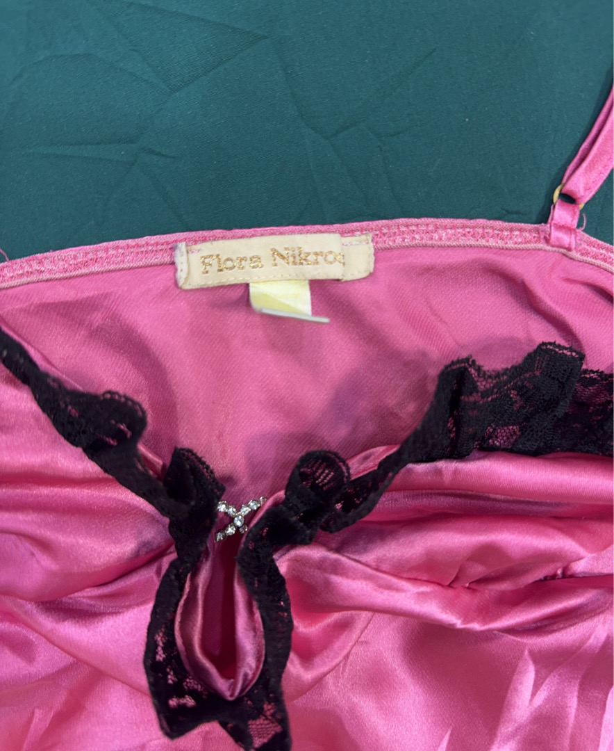 Pink Satin Chemise with Lace Trim