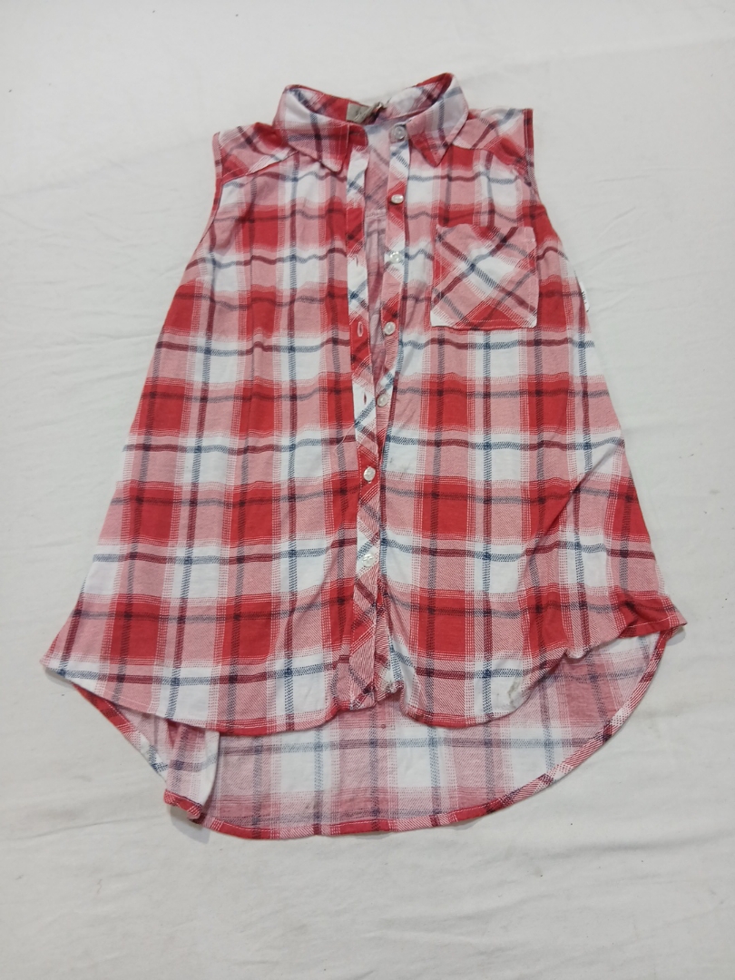 Red Plaid Sleeveless Shirt