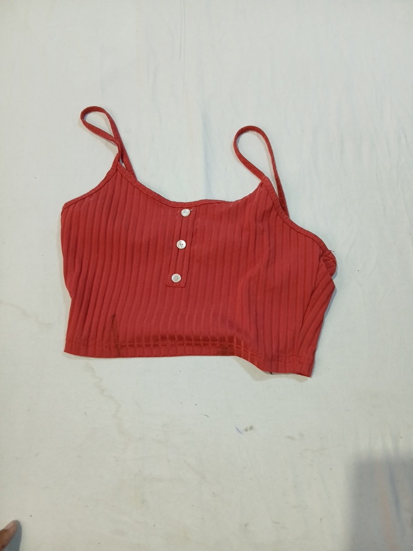 Red Ribbed Cropped Top