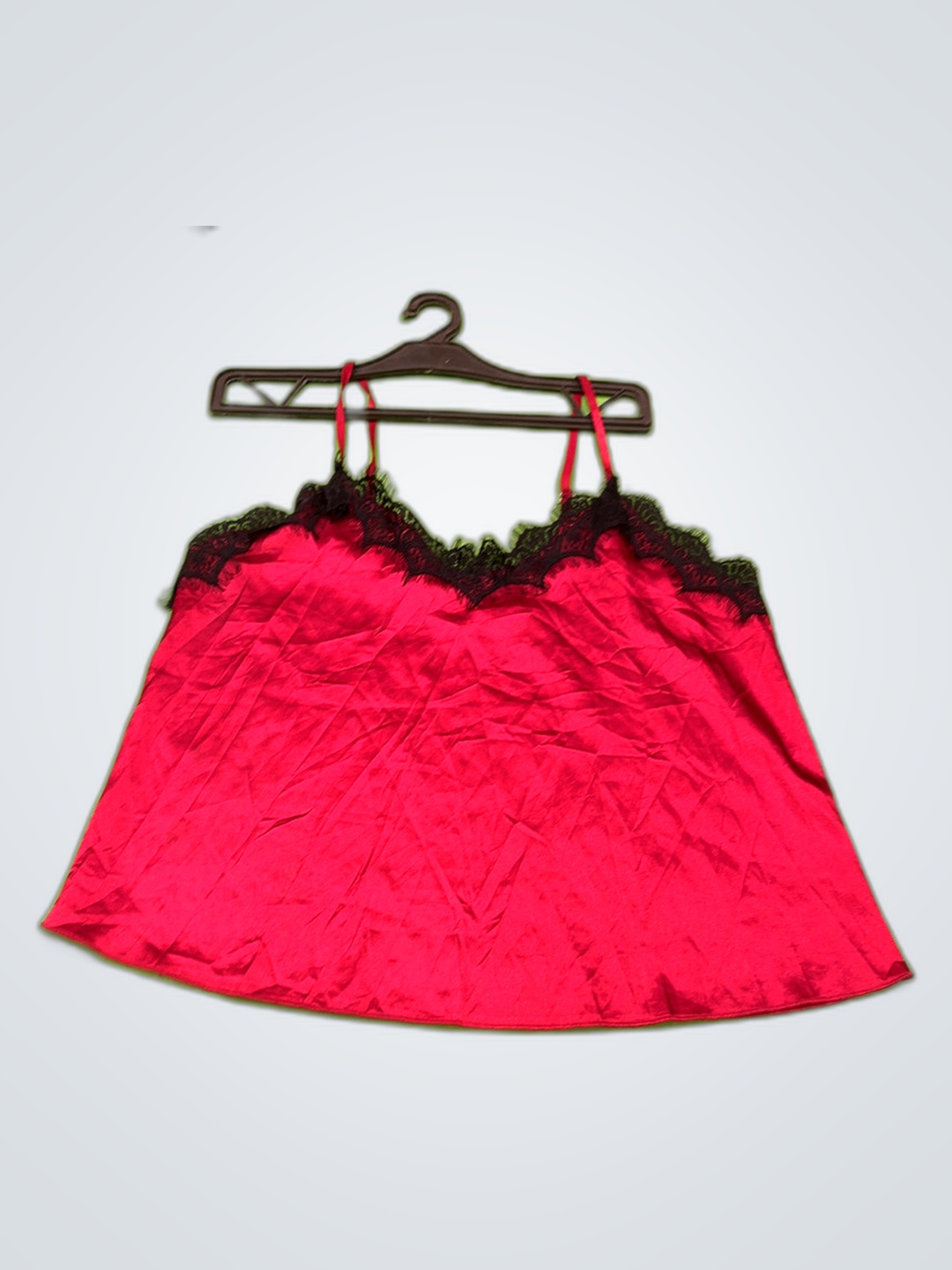 Red Satin Lace Trim Camisole