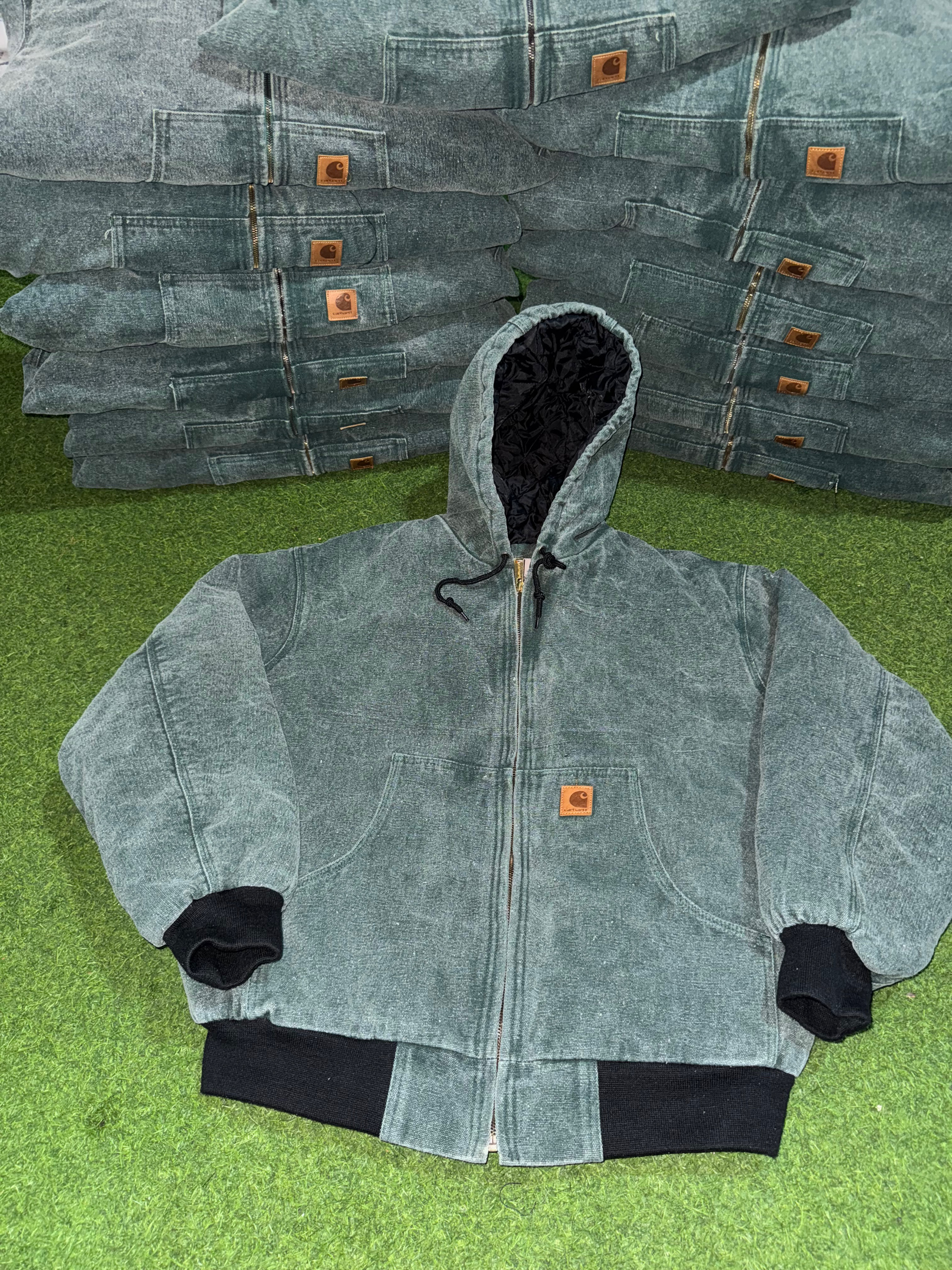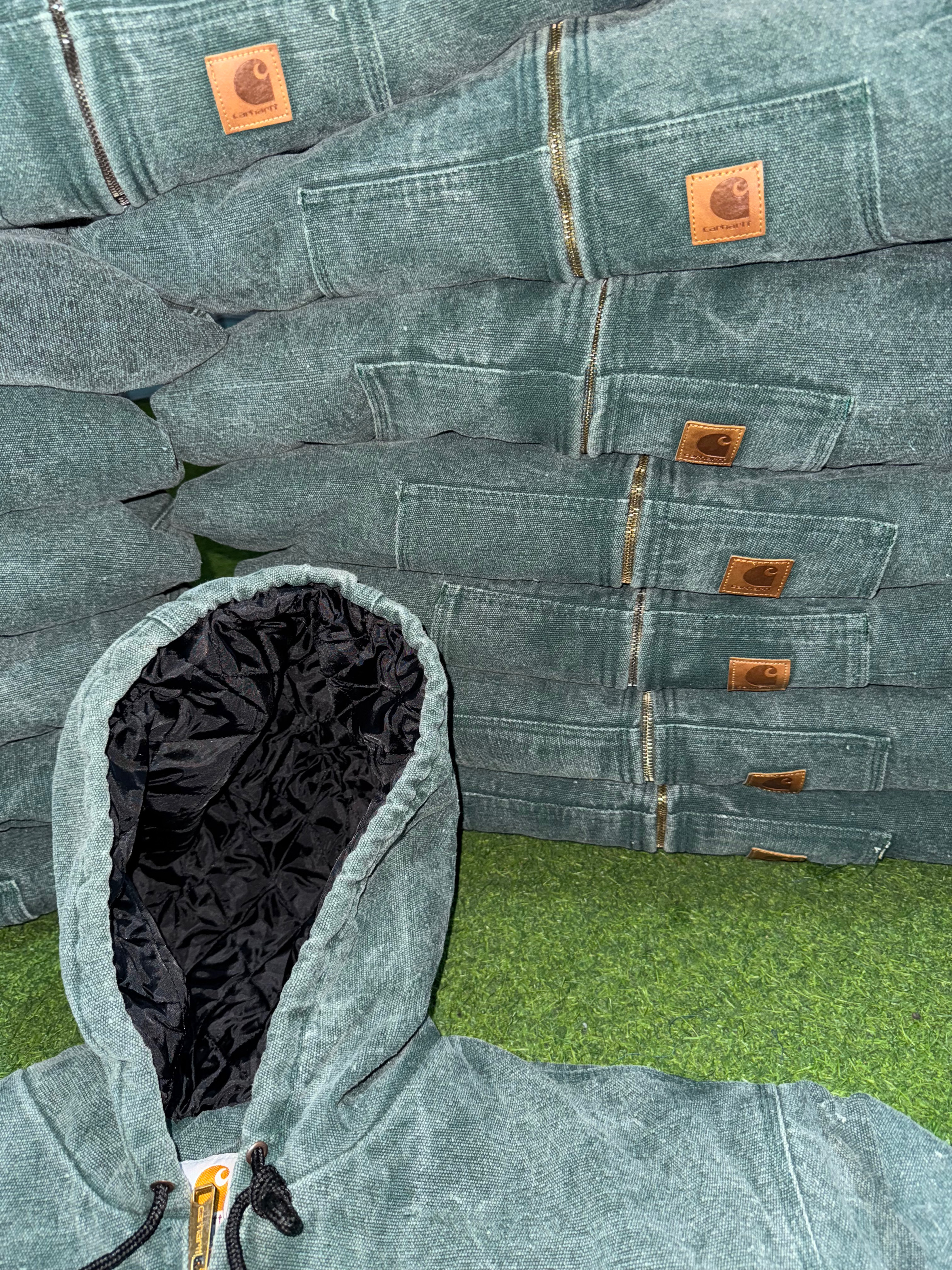 Rework style acid wash green carhartt hooded jackets