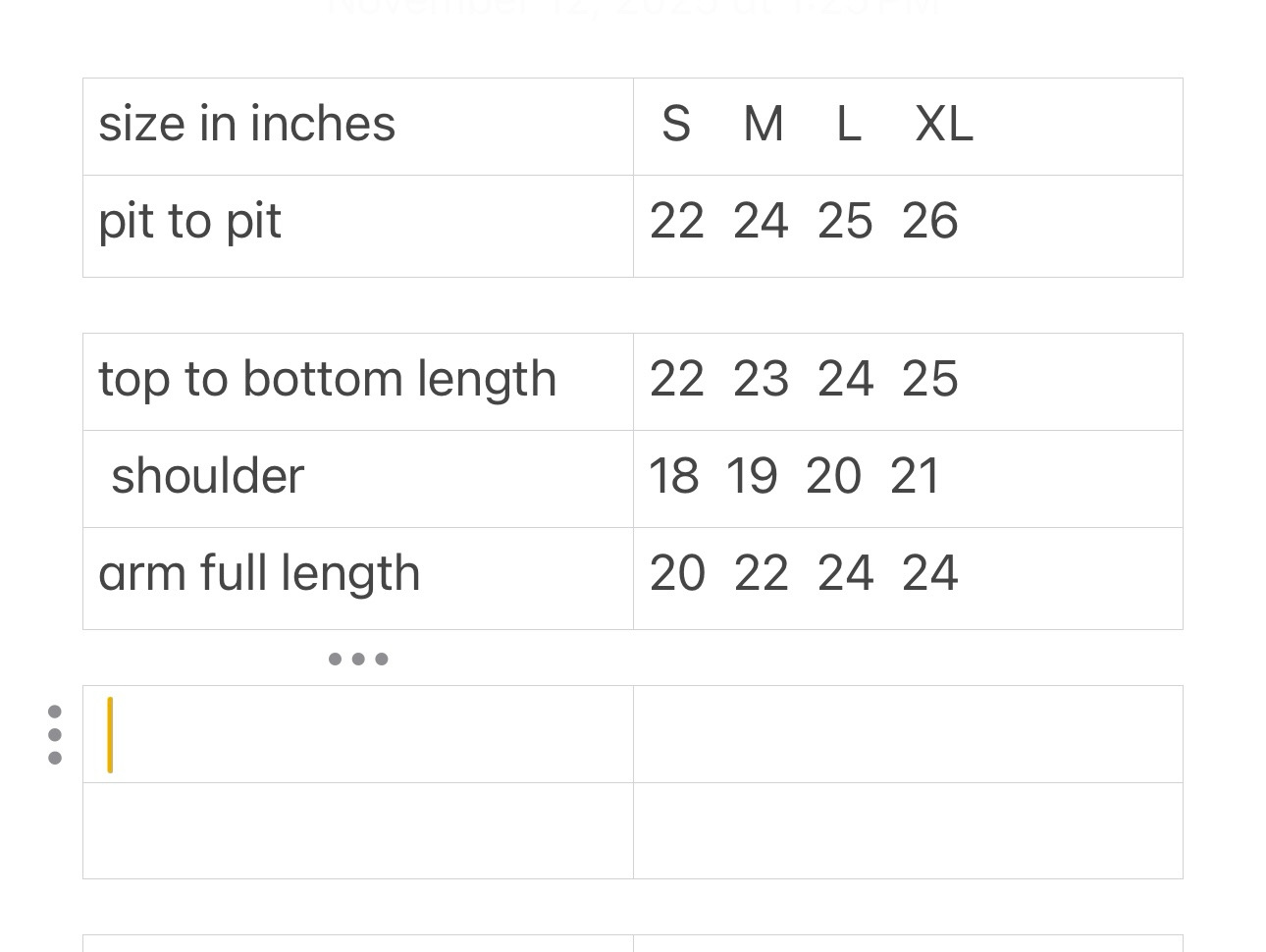 Sizes:
