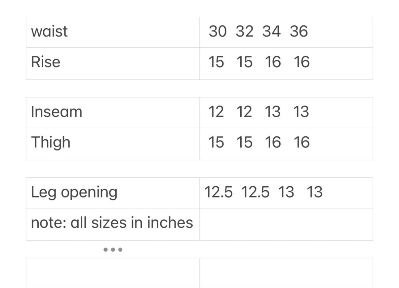 Sizes: 30:32:34:36
