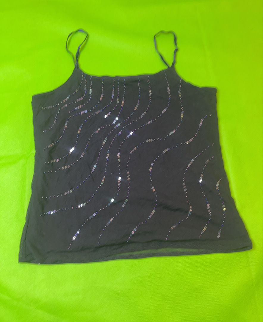 Sequined Black Tank Top