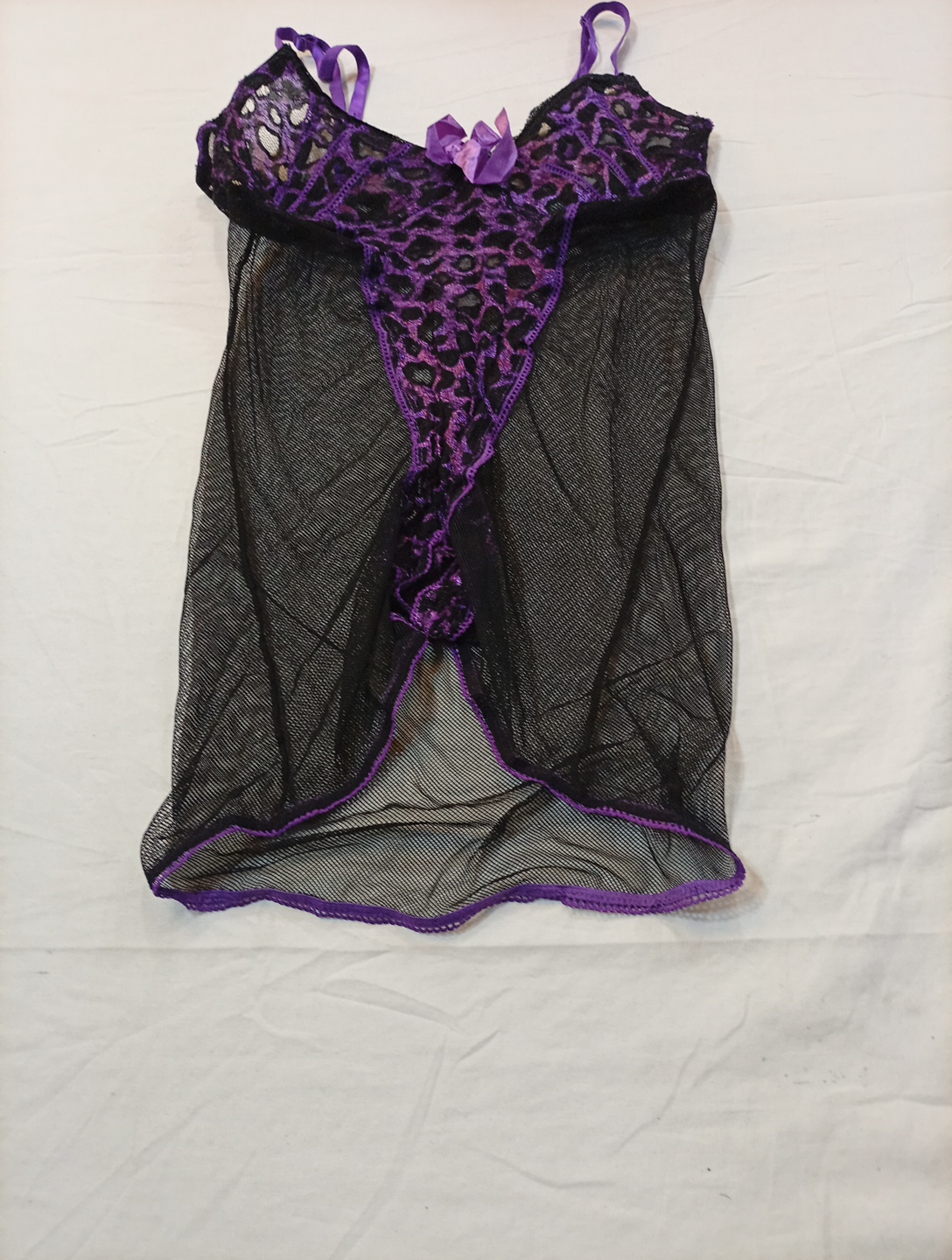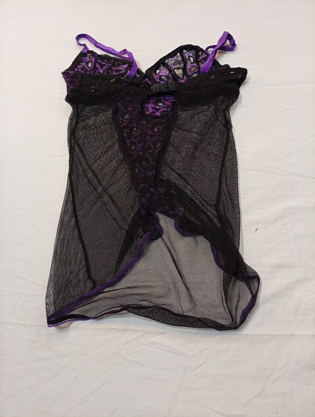 Sheer Black and Purple Lace Chemise