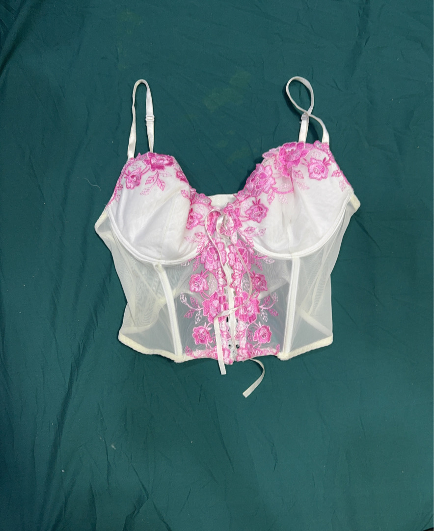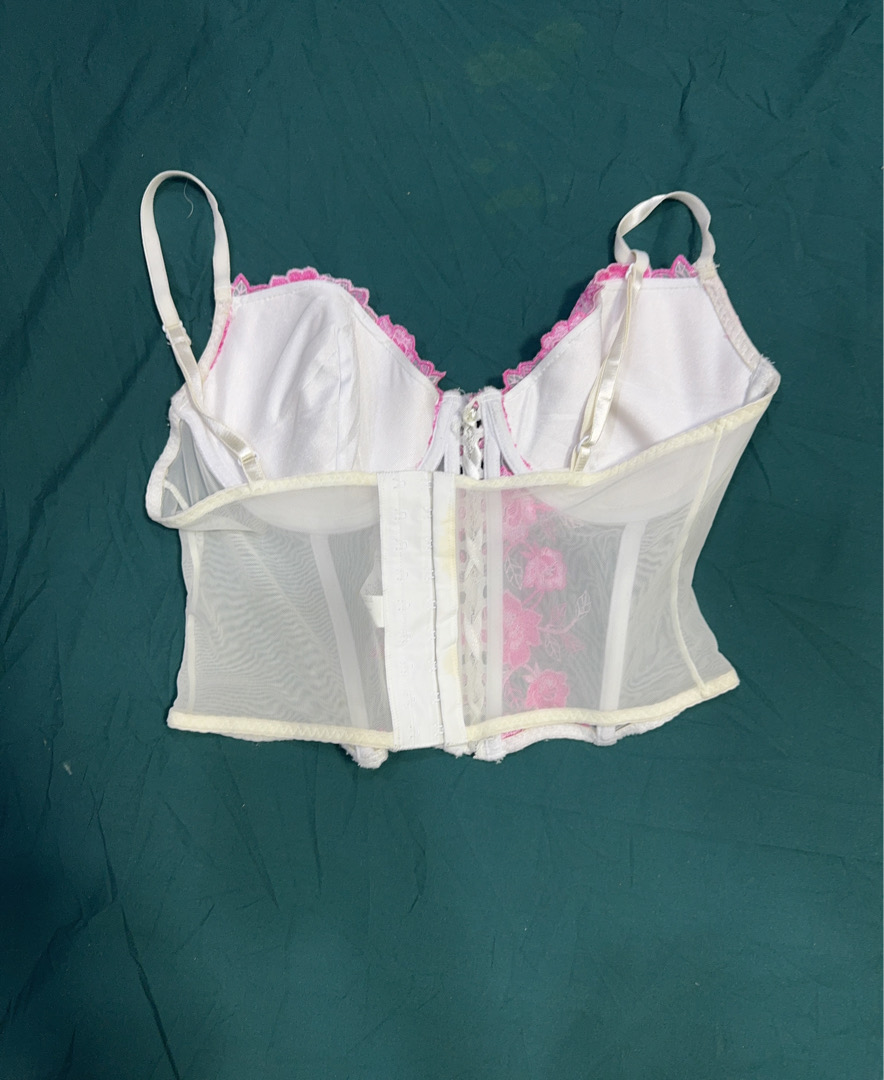 Sheer White Corset with Pink Floral Embroidery