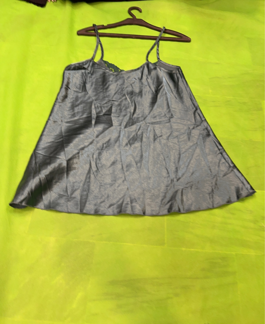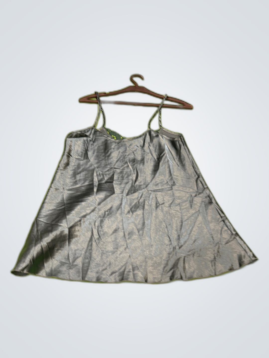 Silver Satin Slip Dress with Lace Trim