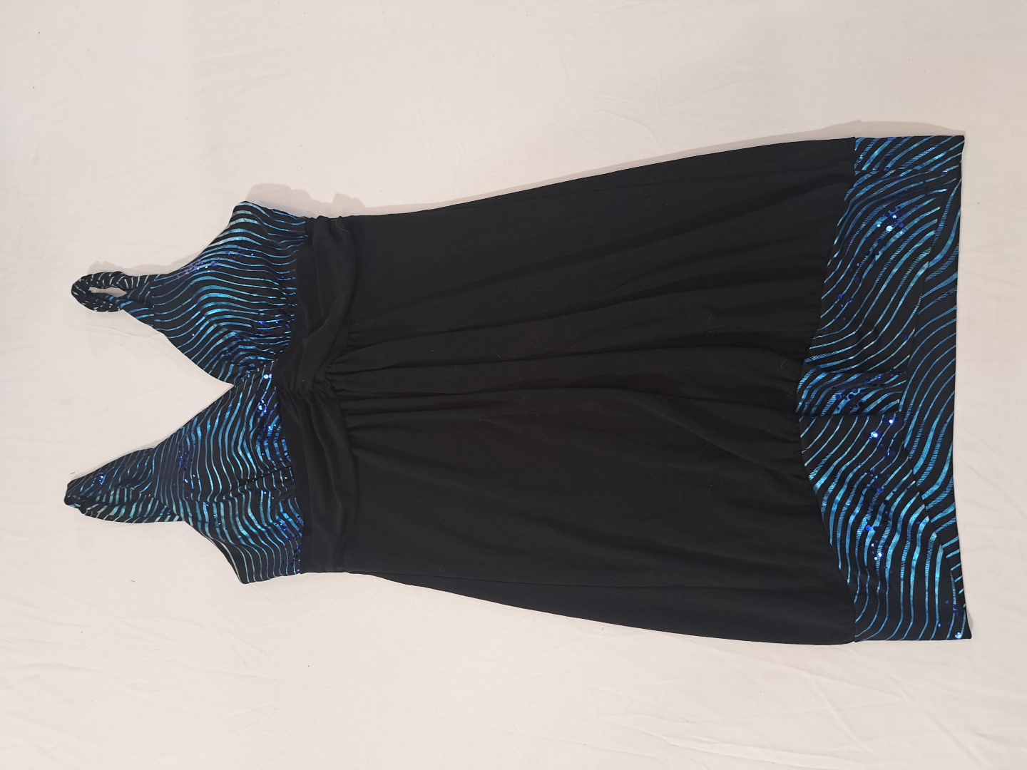 Solar Brand Black Dress with Blue Striped Accents